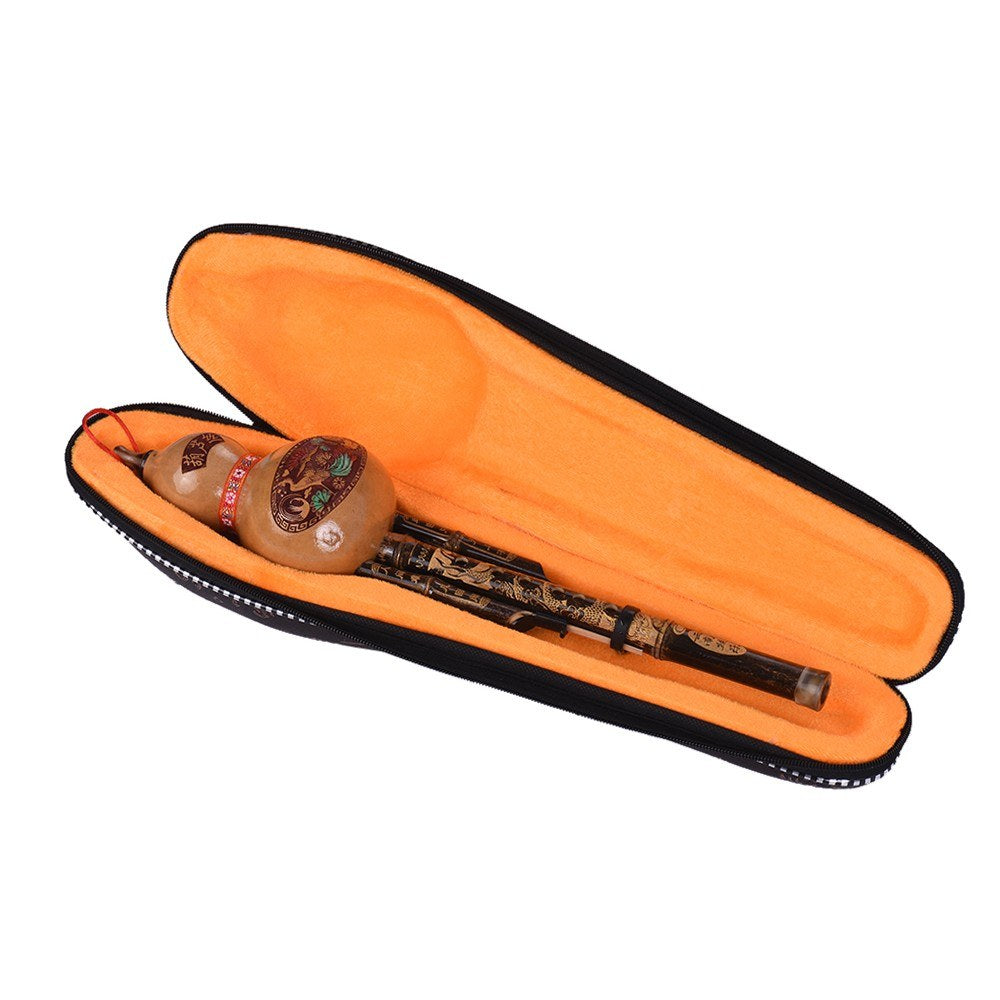Handmade Chinese Black Bamboo Hulusi Flute, Key of C with Case for Beginners