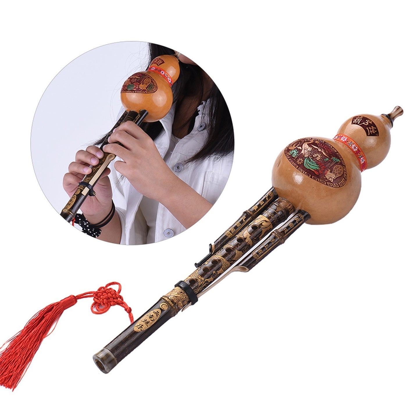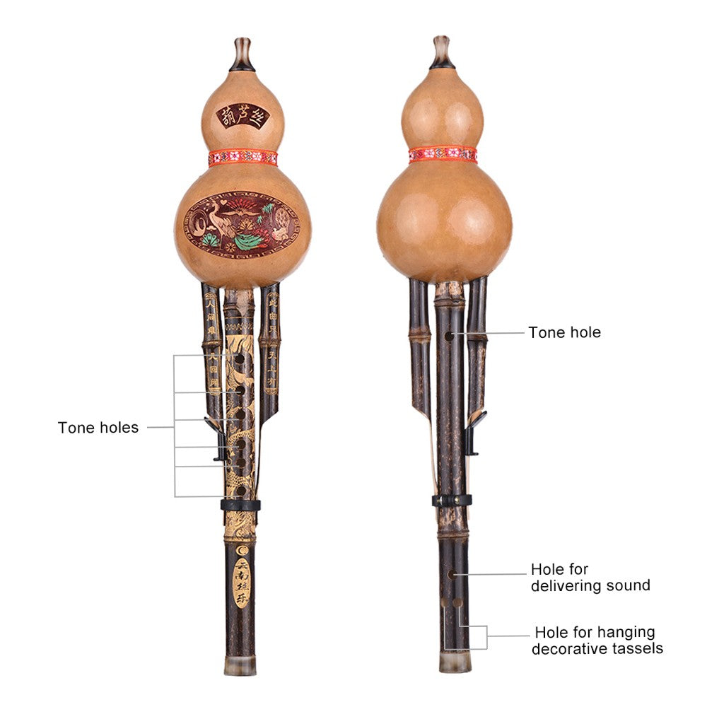 Experience the enchanting sounds of the Hulusi, crafted in the key of C. This beautiful instrument is made from a natural gourd with a black bamboo tone pipe, featuring one main tone pipe and two auxiliary pipes. With its six tone holes, the Hulusi is designed to produce soft and melodious sounds that are sure to captivate you.