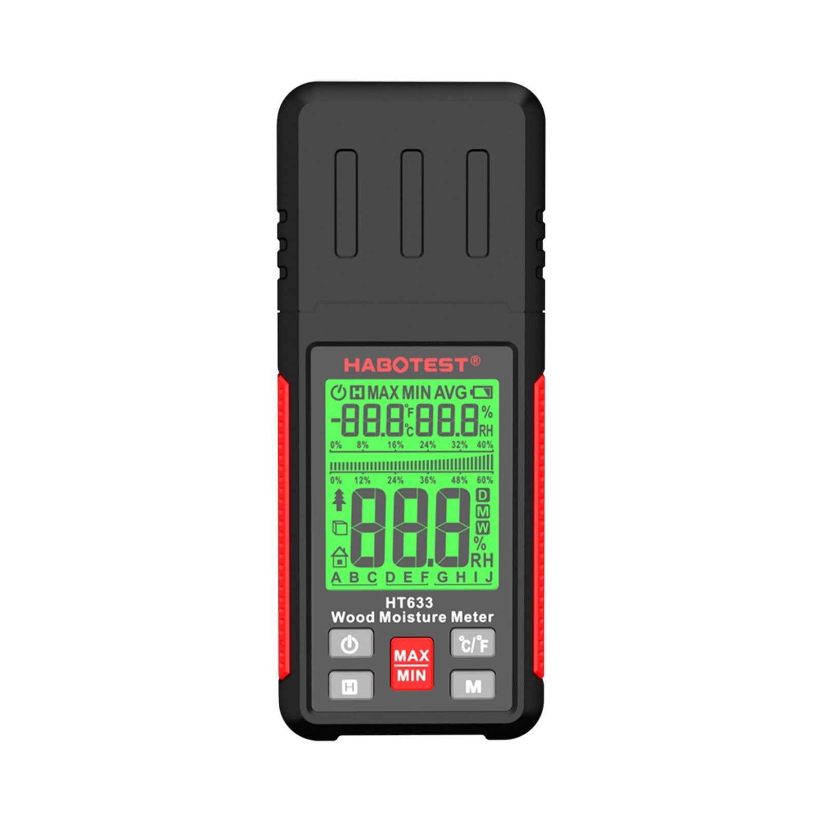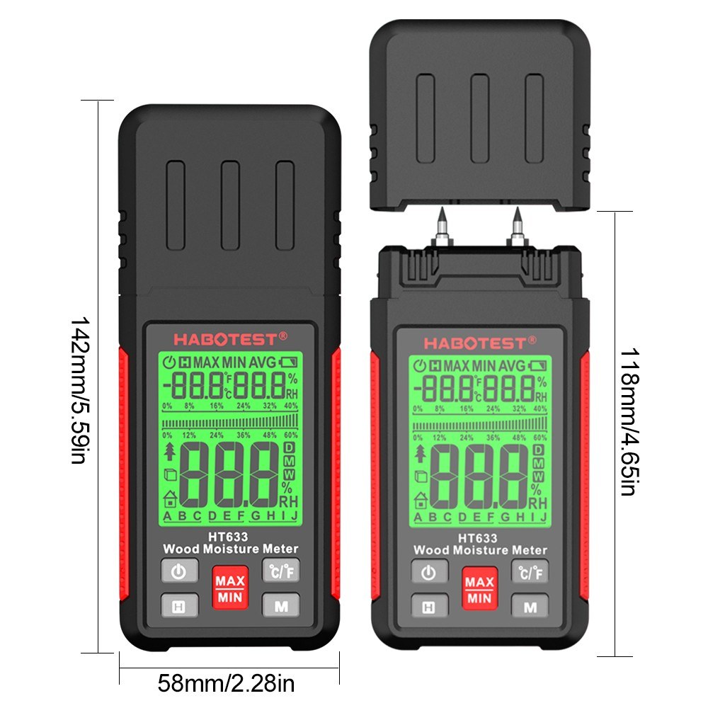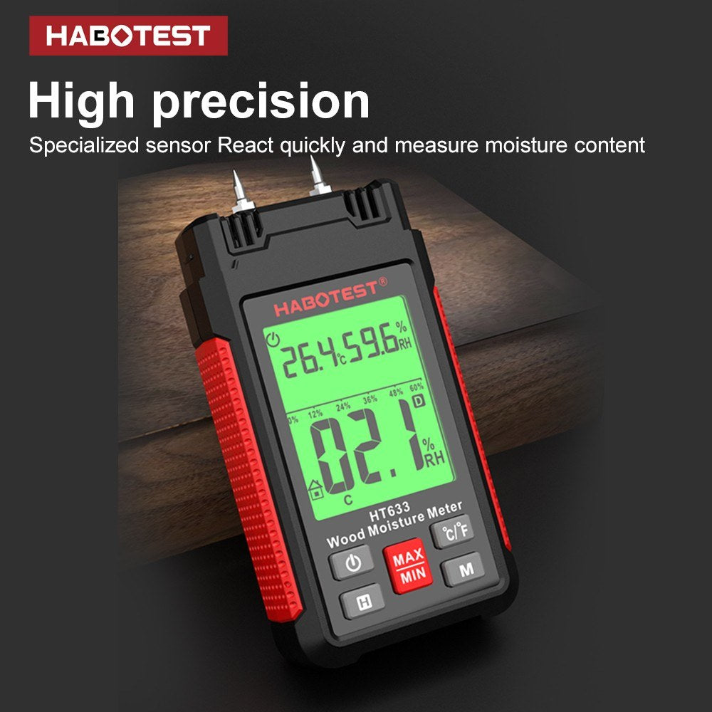 HABOTEST HT633 Digital Wood Moisture Meter - Pin-Type Detector with LCD Backlight for Wood & Building Materials