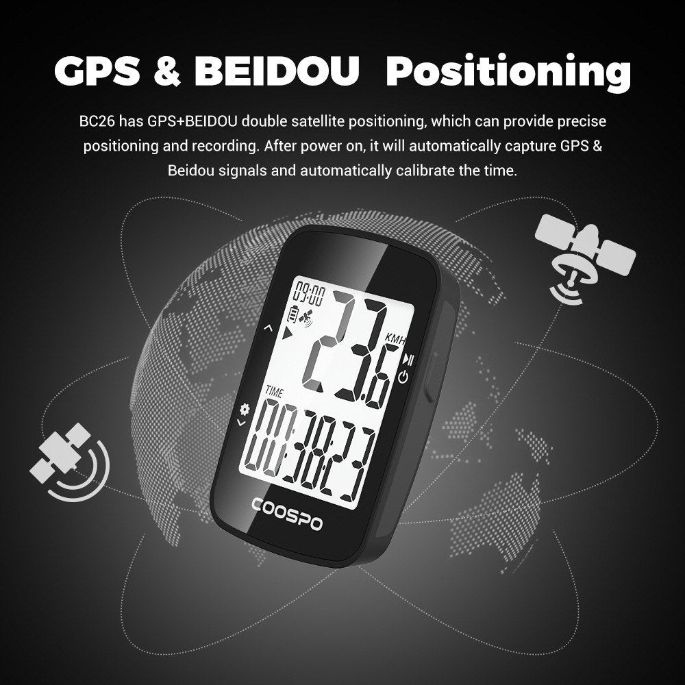 COOSPO BC26 Wireless Bike GPS Computer, Multifunctional & Waterproof with Auto Backlight, Odometer, Speedometer for Road & MTB