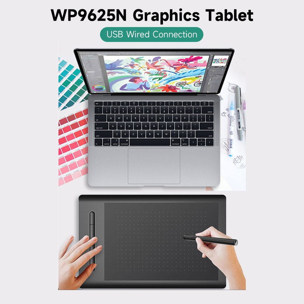 WP9625B Wireless Graphics Tablet - 8192 Pressure Levels, 5080 LPI, 230 PPS, 2.4G/BT