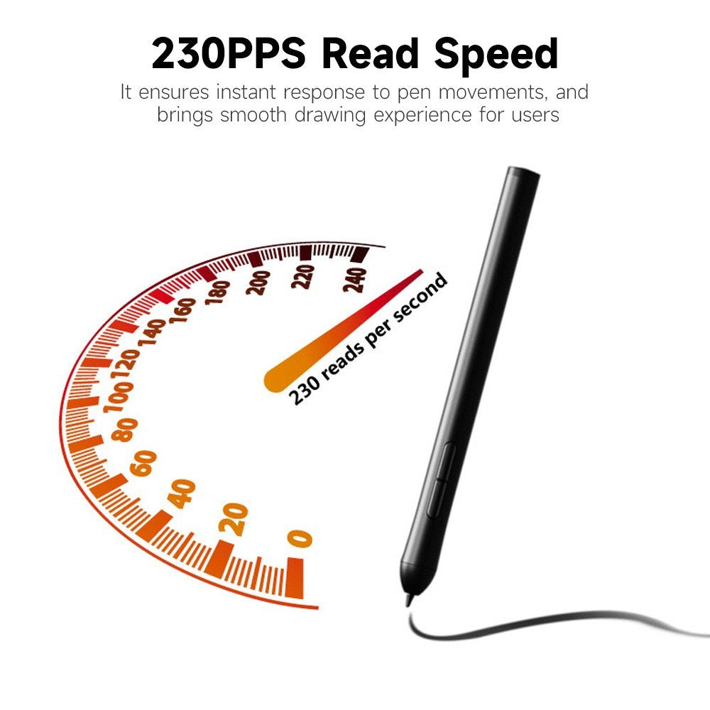 - With a 230 PPS read speed, the tablet ensures an immediate response to pen movements, delivering a seamless drawing experience.