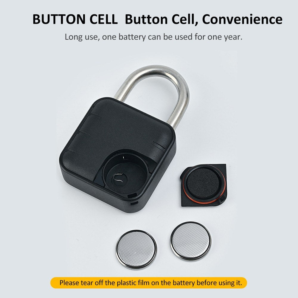 Fingerprint Smart Padlock for Luggage and Doors, CR2032 Battery Powered