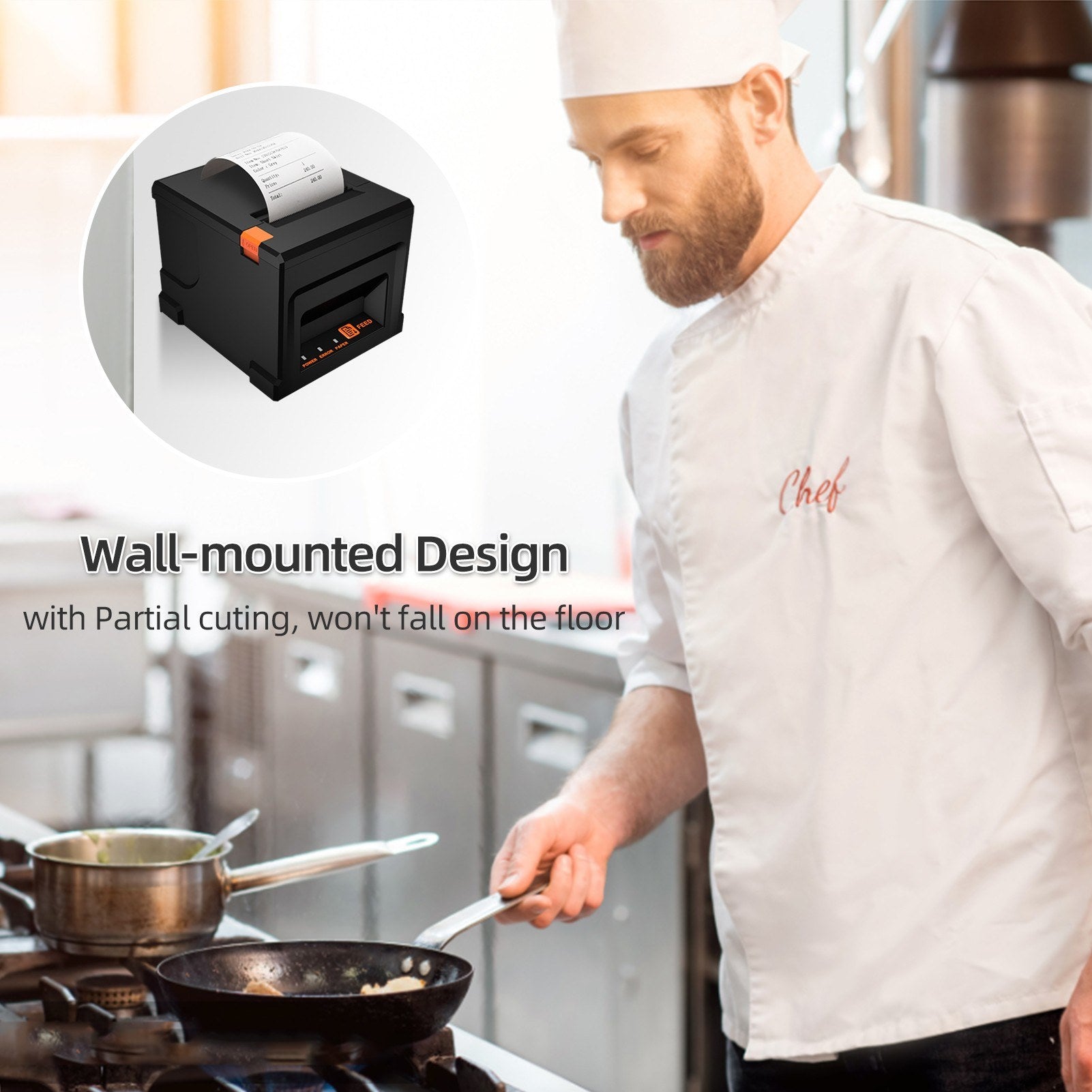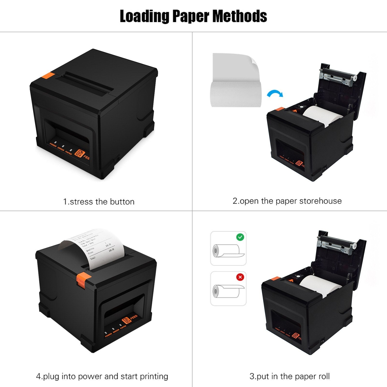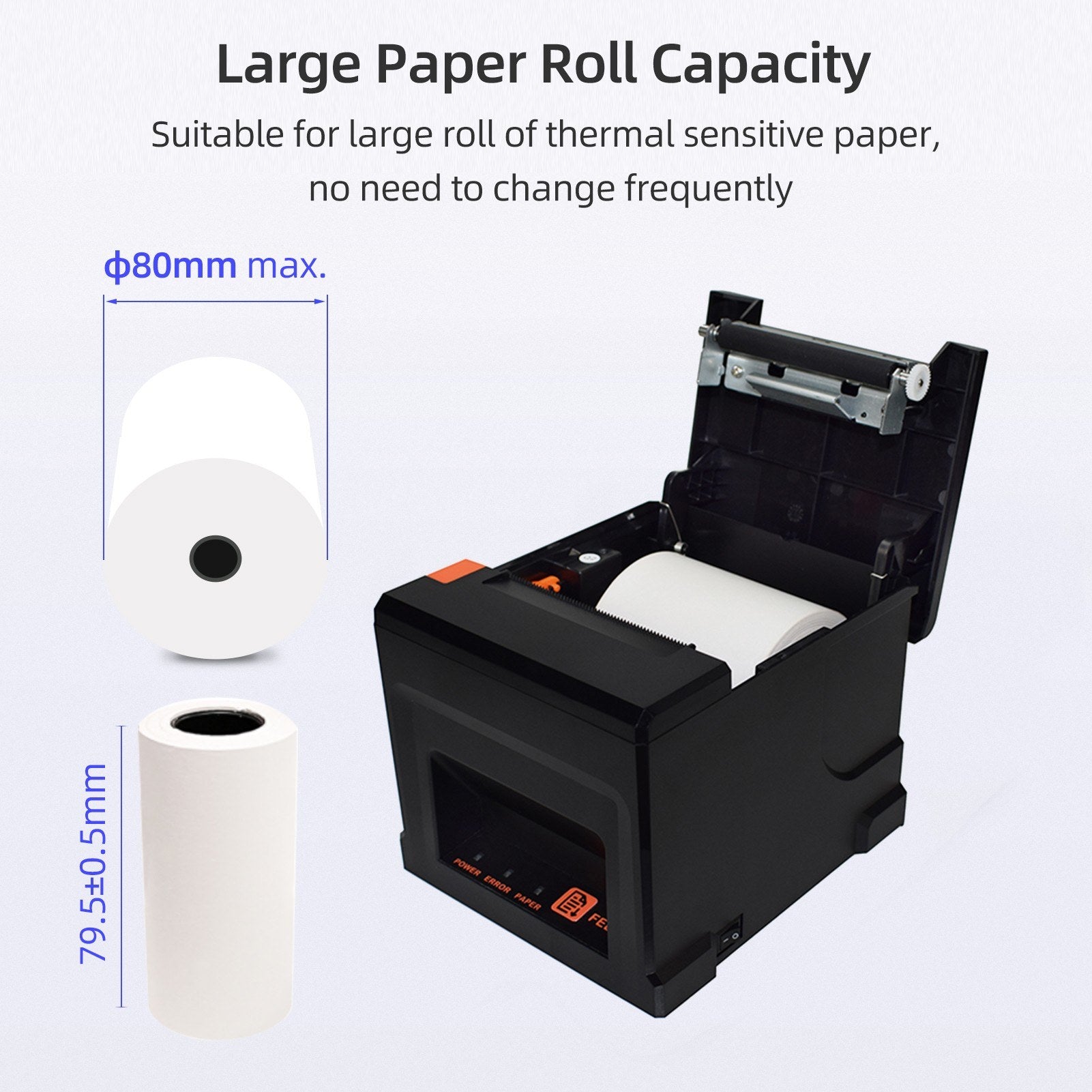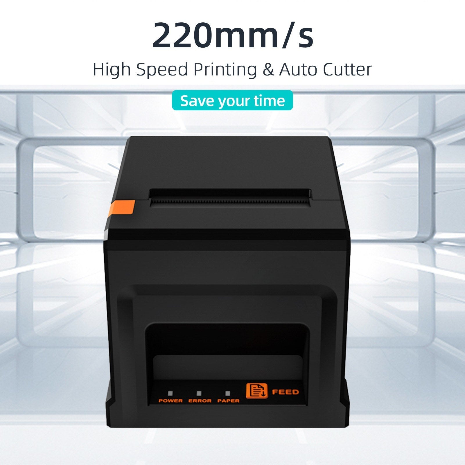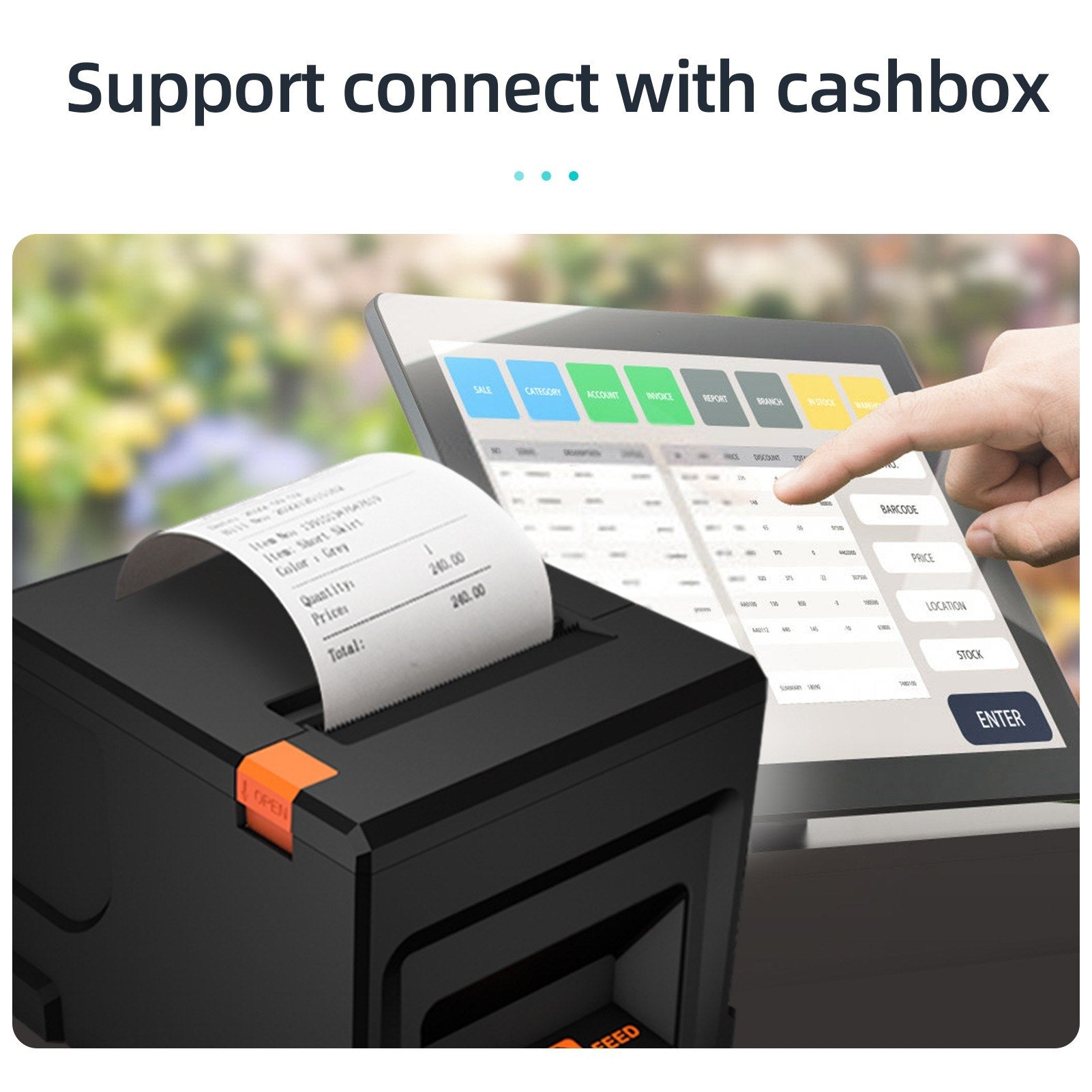 - Affordable and fast printing with a thermal print head requiring no ink cartridges or ribbons. Ensures clear printing with low operation costs. Features an auto cutter for easy receipt paper removal.