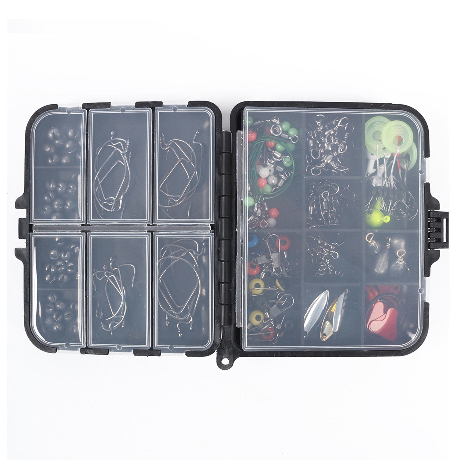 - Includes a variety of fishing accessories such as swivels, sinkers, leaders, and more.