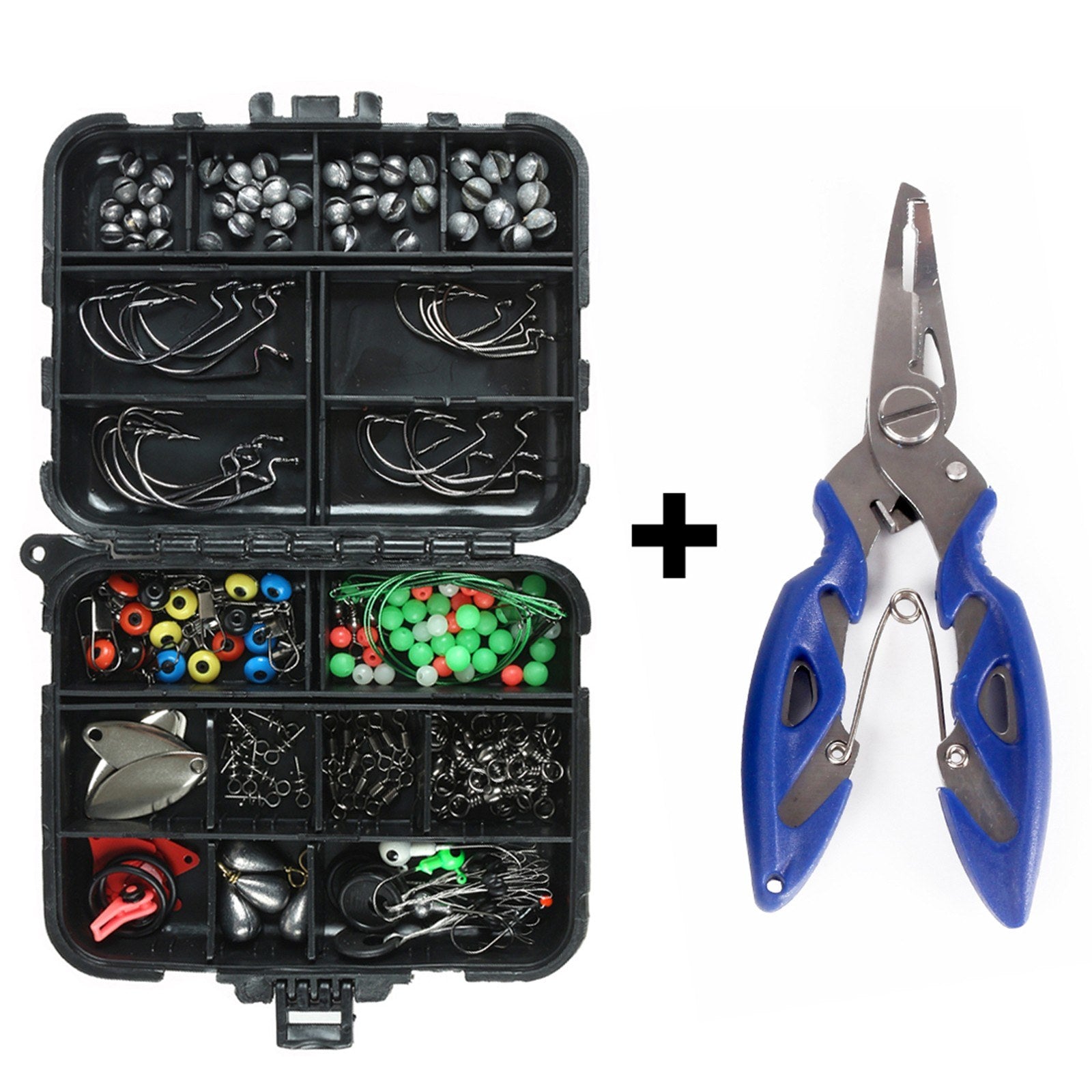 188-Piece Fishing Accessory Kit with Tackle Box, Pliers, Jigs, Hooks, Swivels, Snaps, Sinkers, Sliders, and Beads