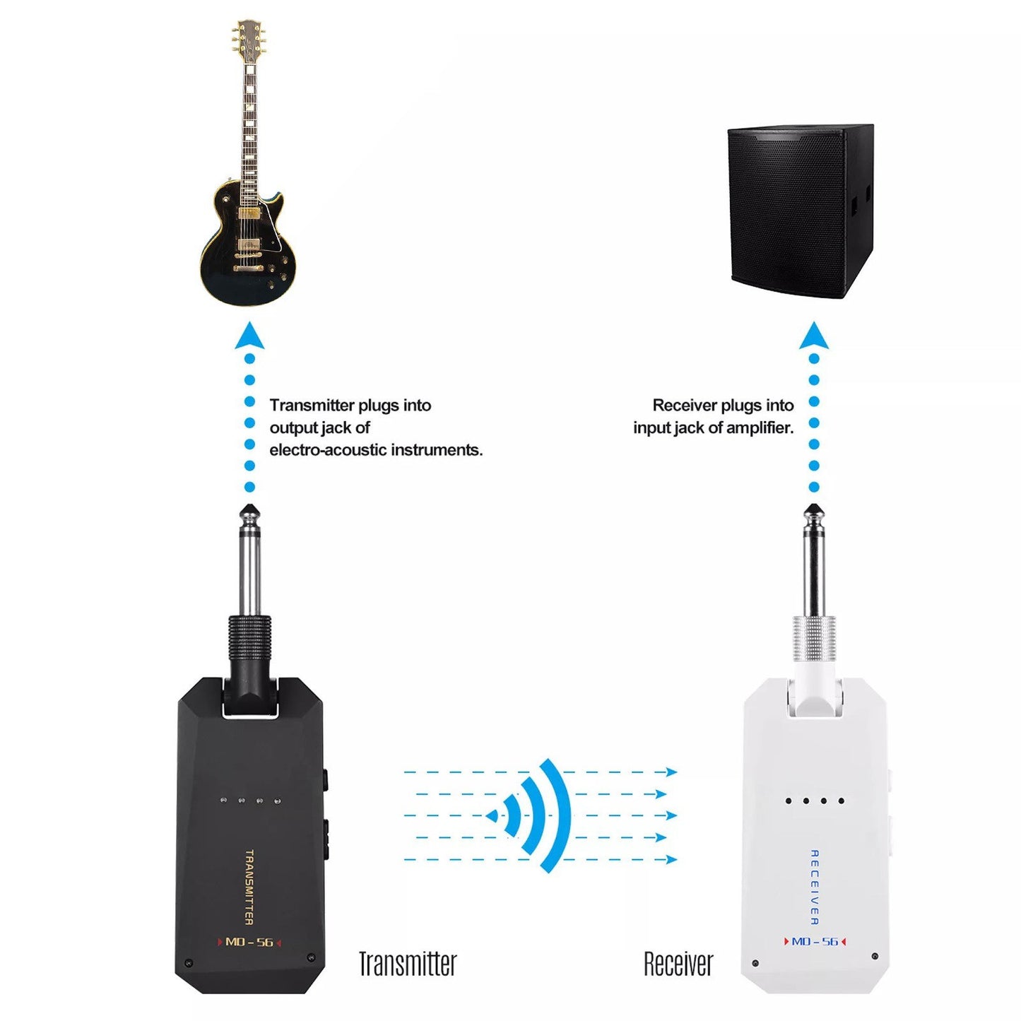 MD-5G Wireless 5.8GHz Guitar Audio Transmitter & Receiver - Rechargeable System