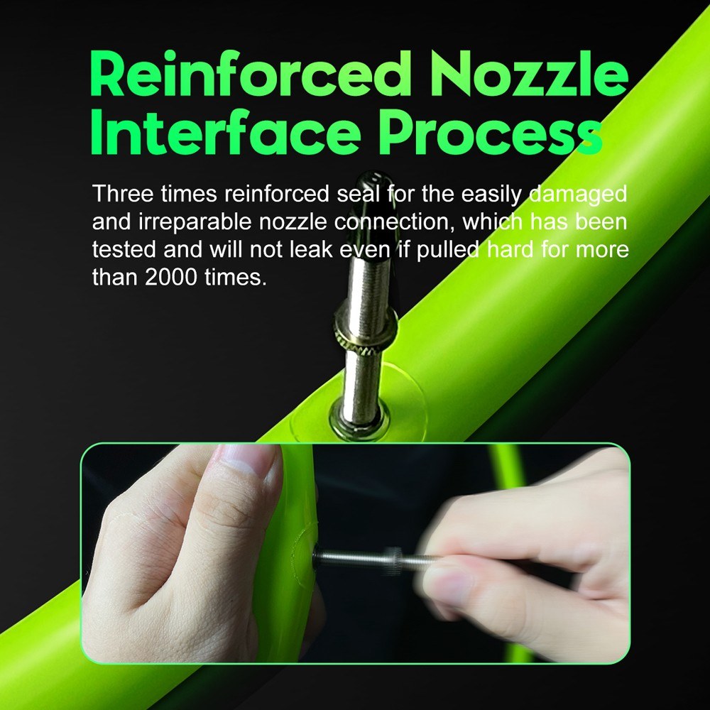 - Features a triple-reinforced seal at the nozzle connection, rigorously tested to resist leaks, even after over 2000 pulls.