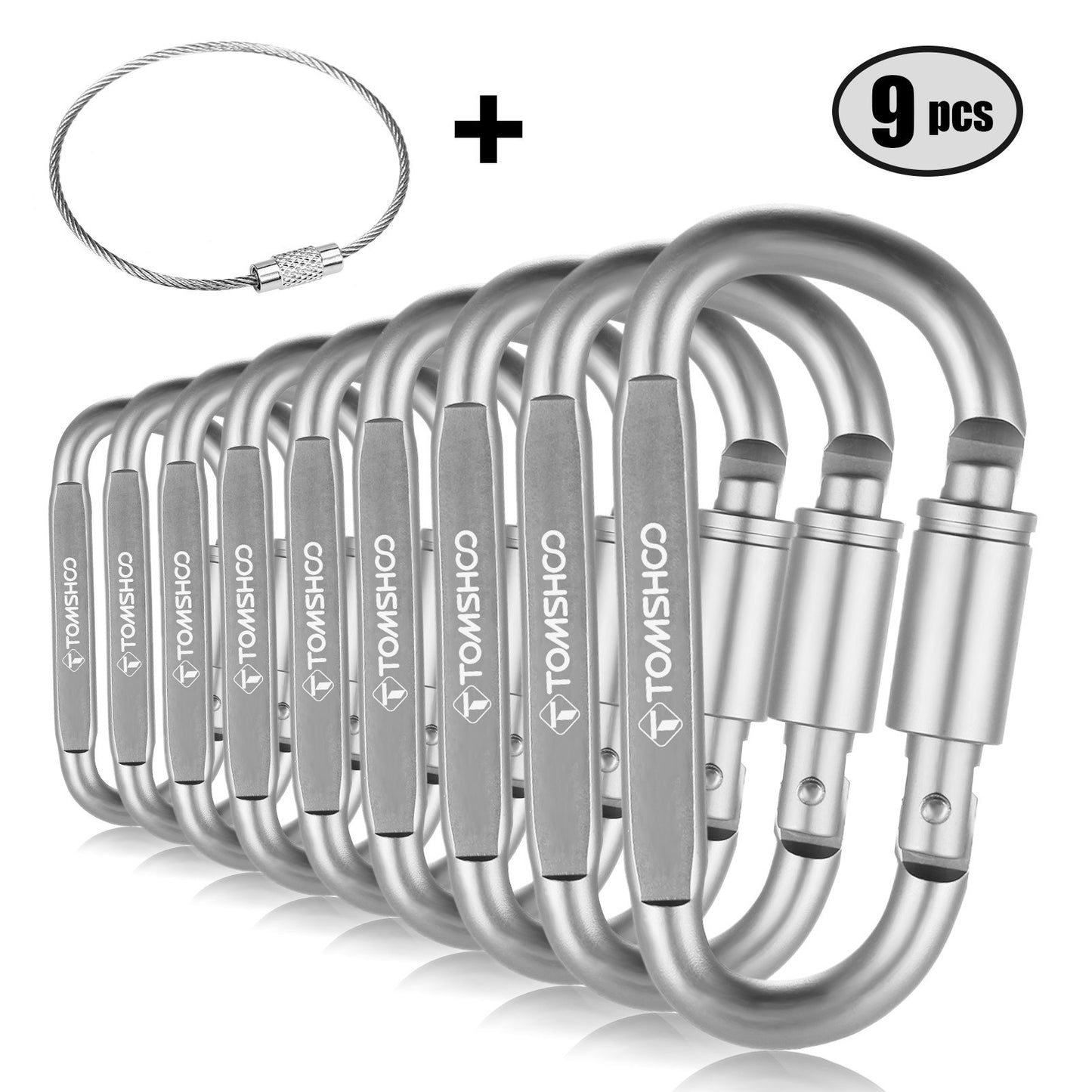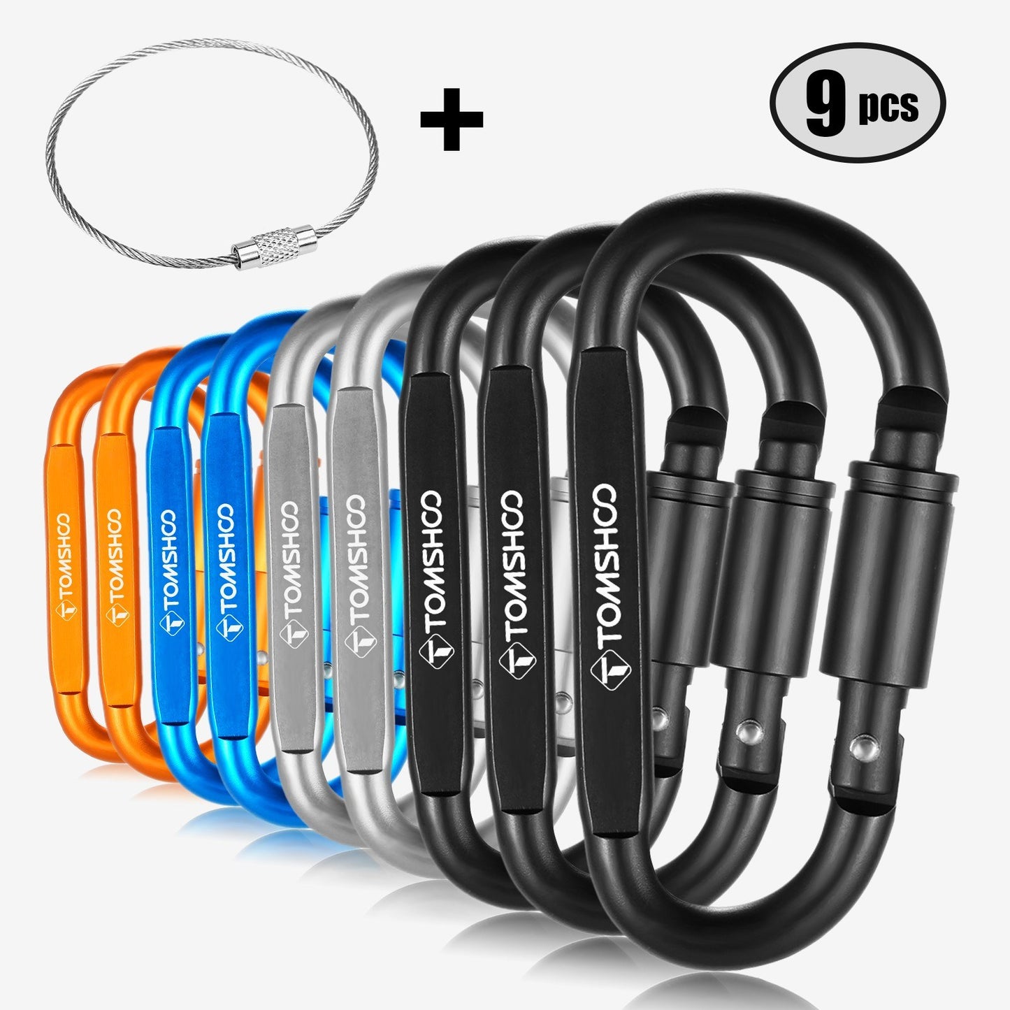 - Packaged Set: Includes a set of 9 carabiners with a convenient steel wire ring for easy storage and organization.