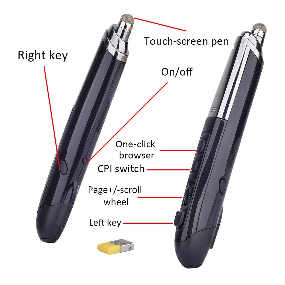 PR-08 2.4GHz Wireless Optical Touch-Pen Mouse with 800/1200/1600 DPI, Laser Presenter & Handwriting for PC/Laptop