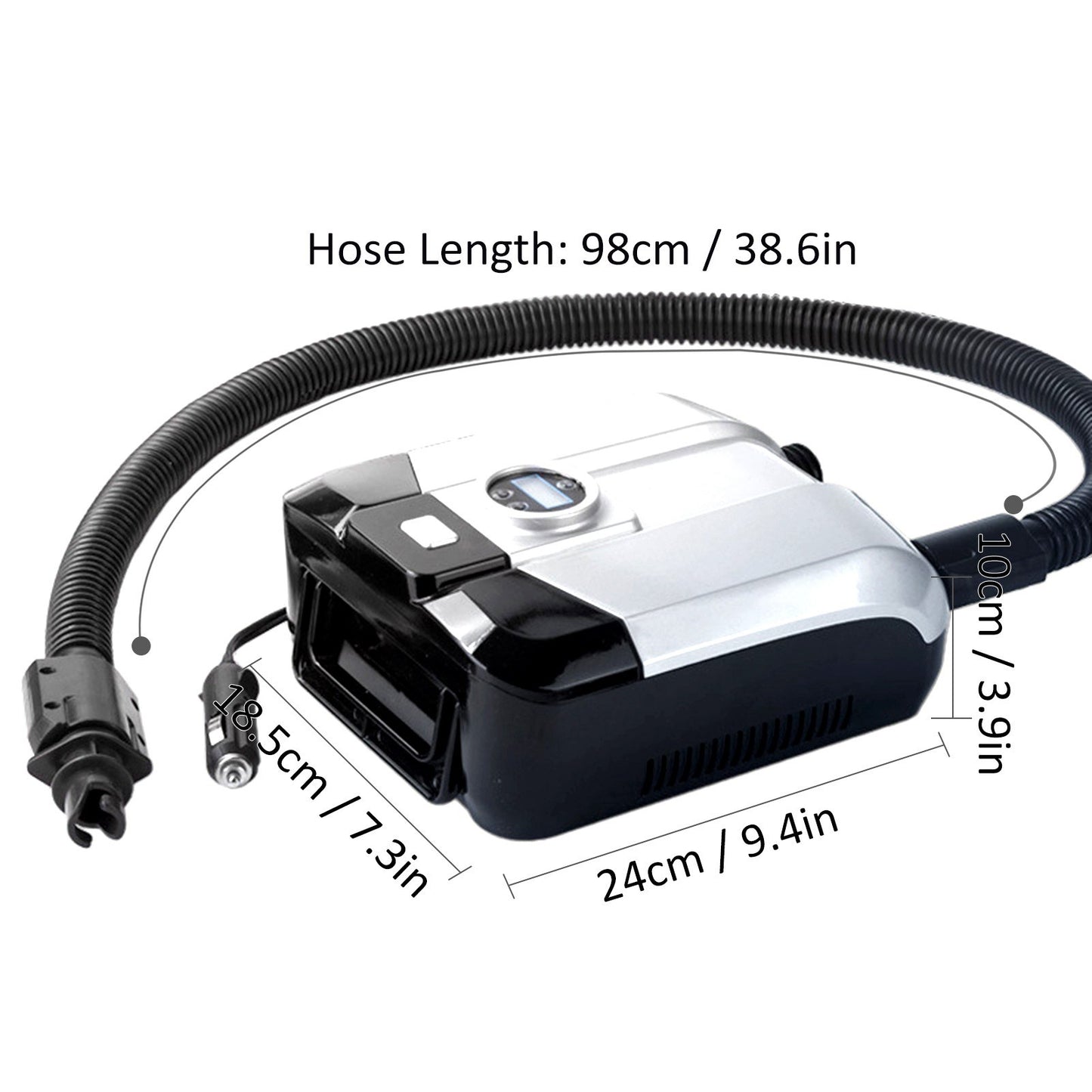 - Powerful Dual Motors: Equipped with high-performance dual copper motors, this pump efficiently inflates and deflates your SUPs, inflatable boats, and rafts.