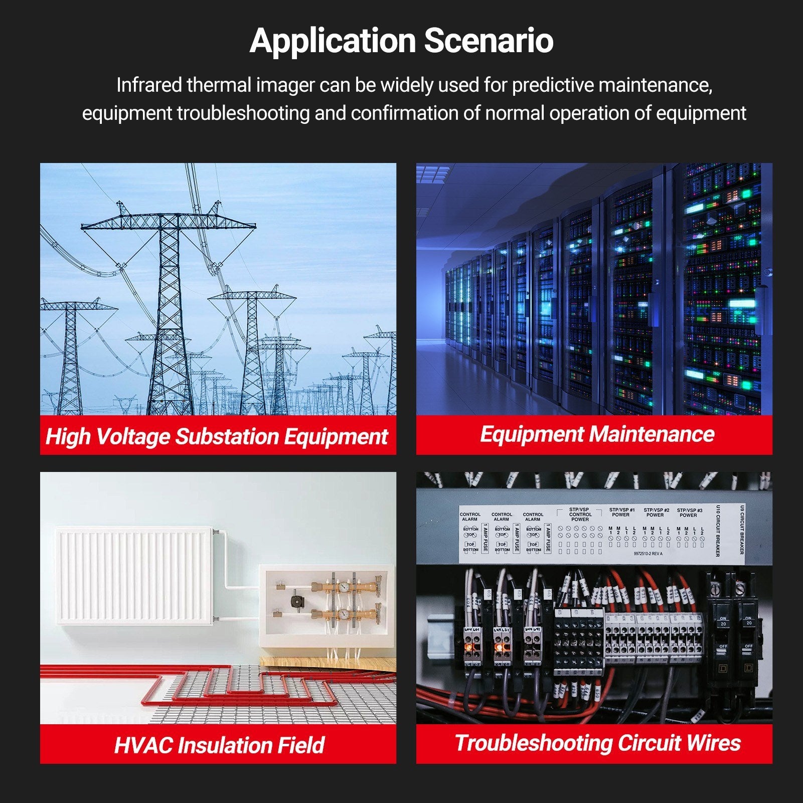 The infrared thermal imager is perfect for predictive maintenance, equipment troubleshooting, and ensuring proper equipment operation.