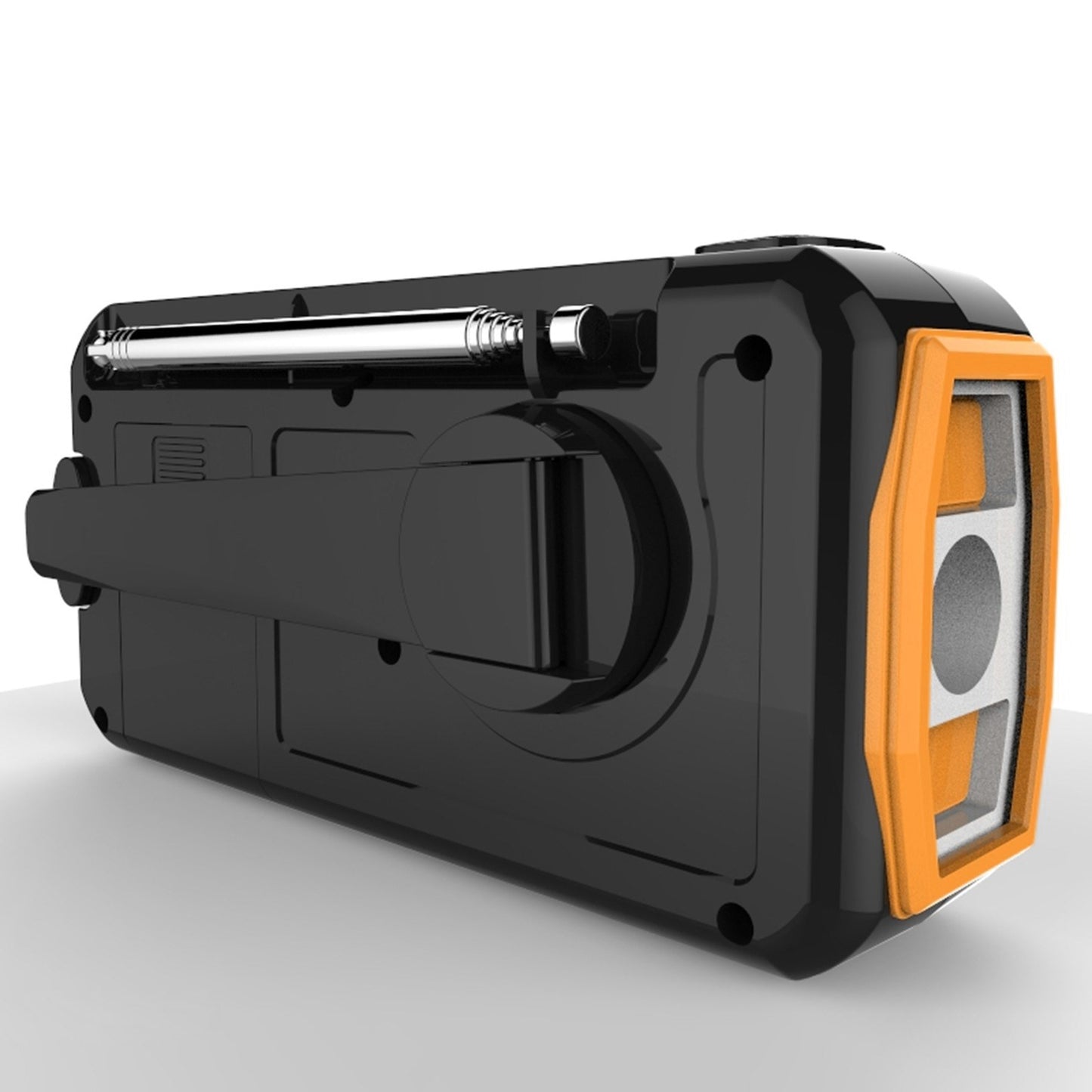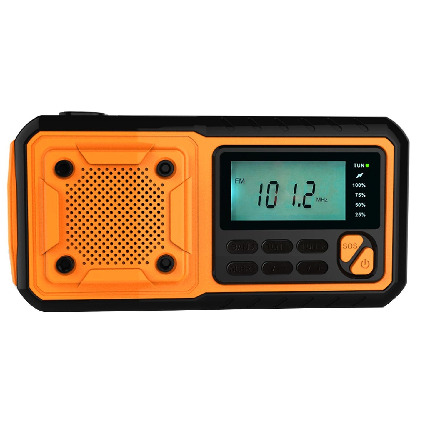 Designed for emergencies, it features an SOS alarm and LED flashlight. User-friendly rotary knobs for volume and tuning, along with AM/FM/WB switch buttons, make operation simple and convenient.