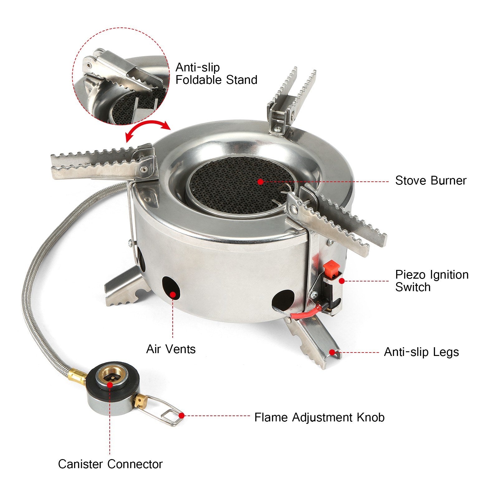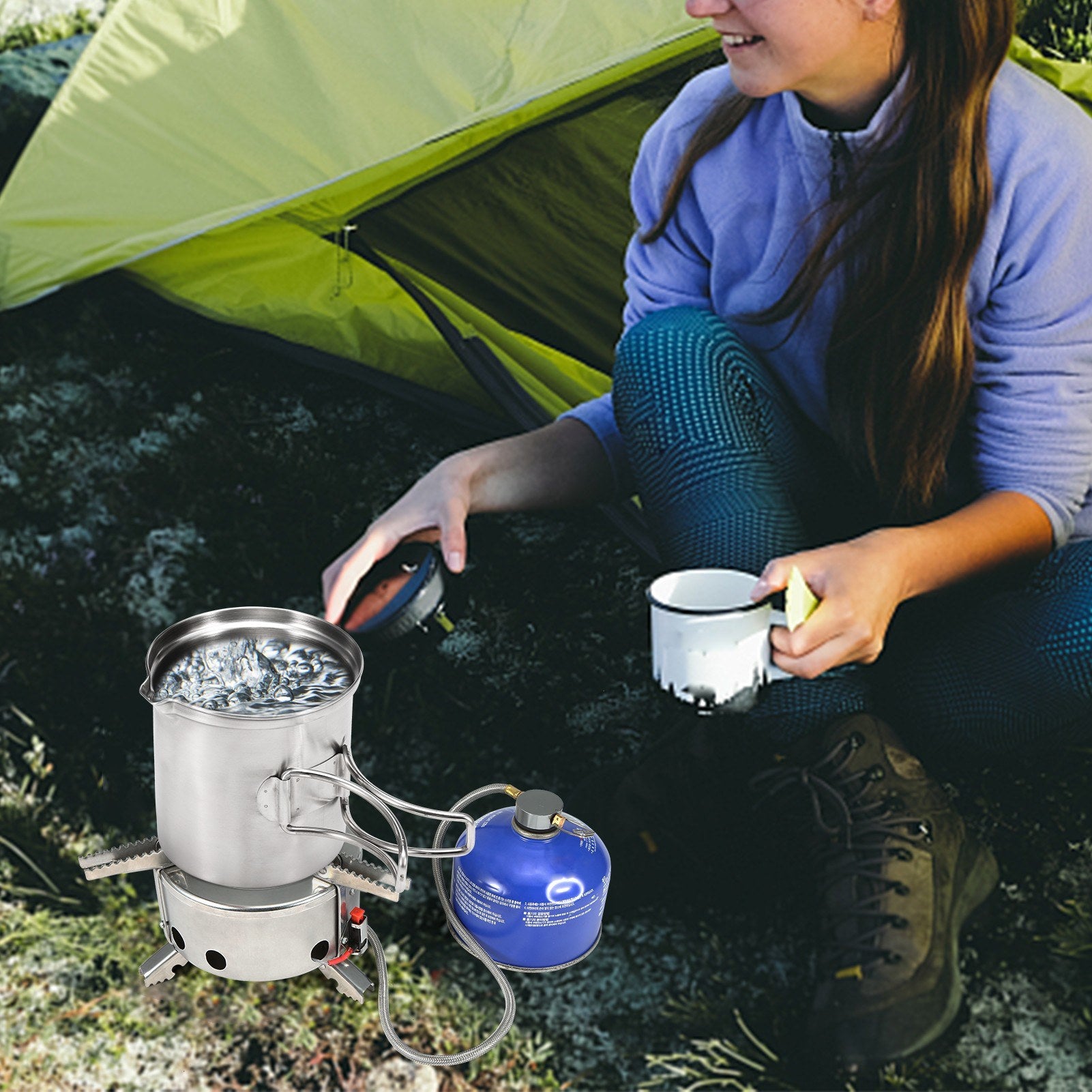Elevate your outdoor cooking experience with this versatile and powerful camping stove, crafted to meet all your wilderness culinary needs.