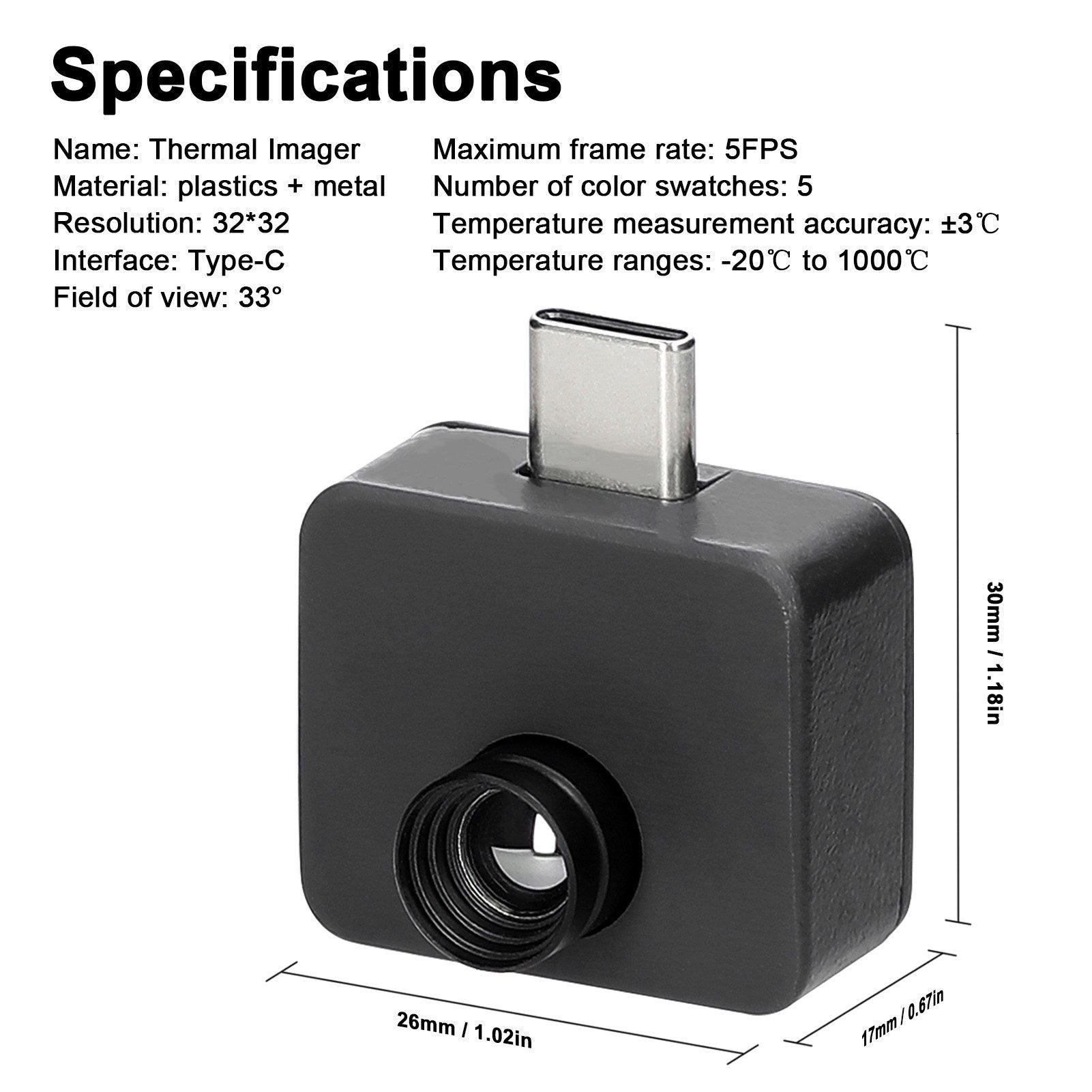 Compact Mobile Phone Thermal Imager: -20℃ to 1000℃ Range, 5 Color Palettes, Max/Min/Center Temp Measurement