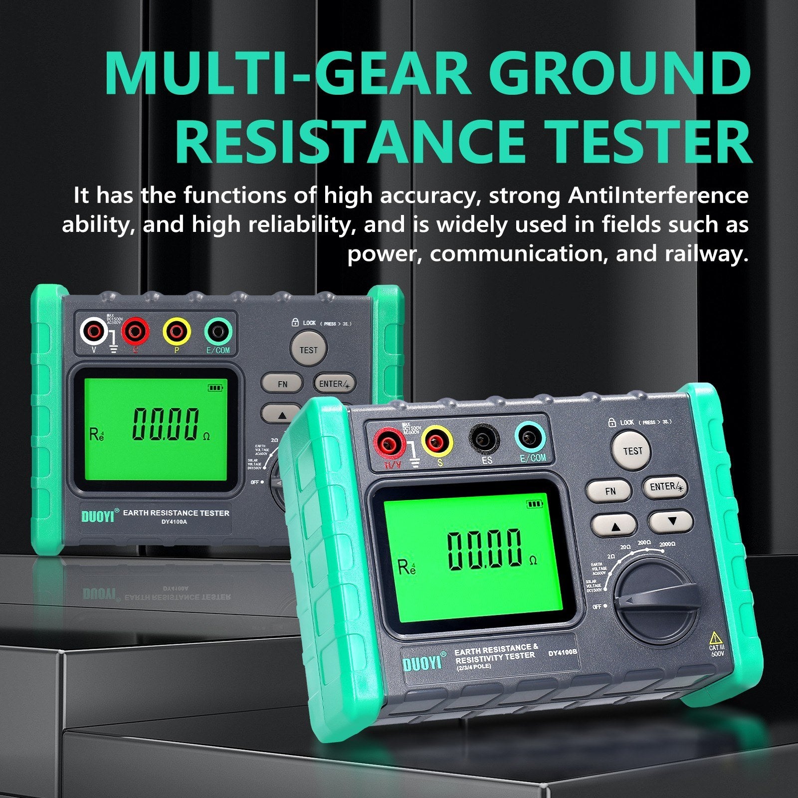This device is ideal for testing grounding resistance and soil resistivity in various electrical setups such as agricultural equipment distribution lines, indoor wiring, and electrical machinery. (Note: Only model DY-4100B can test soil resistivity.)