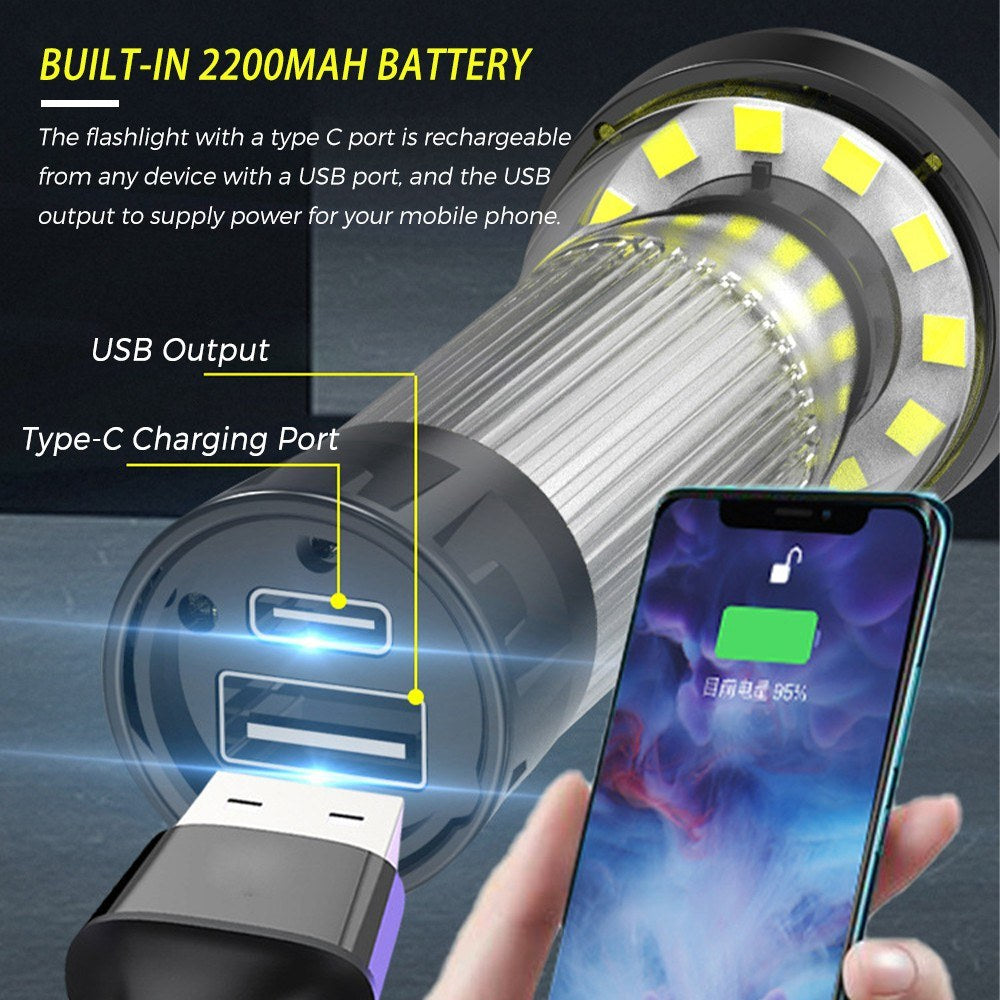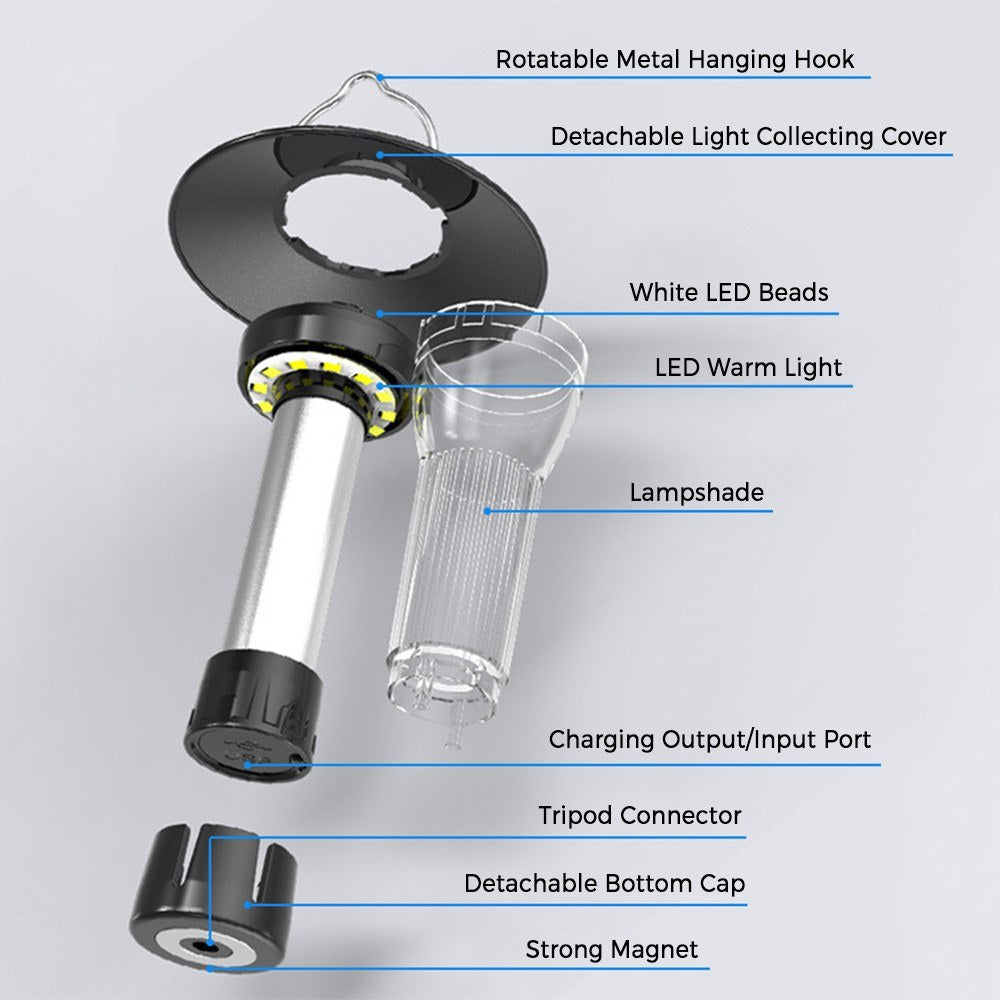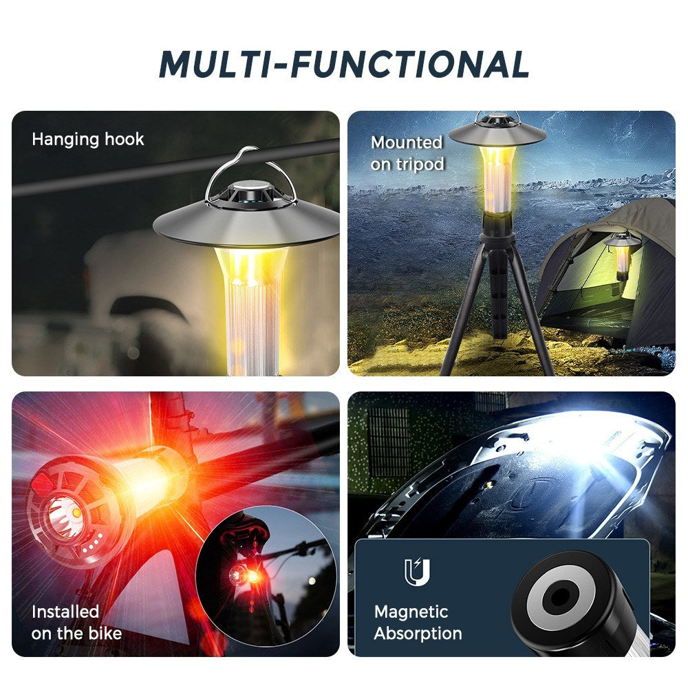 Rechargeable Waterproof USB Flashlight & Magnetic Tent Light with Tripod for Camping & Emergency