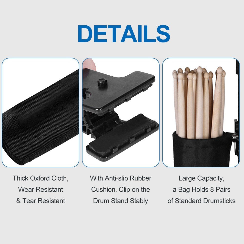 Large Capacity Drumstick Holder - Clamp-On Drum Set Storage Bag for Up to 8 Pairs, Oxford Cloth