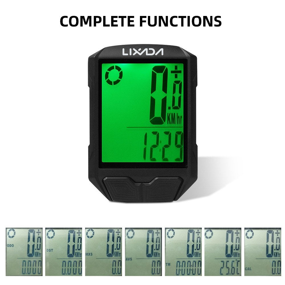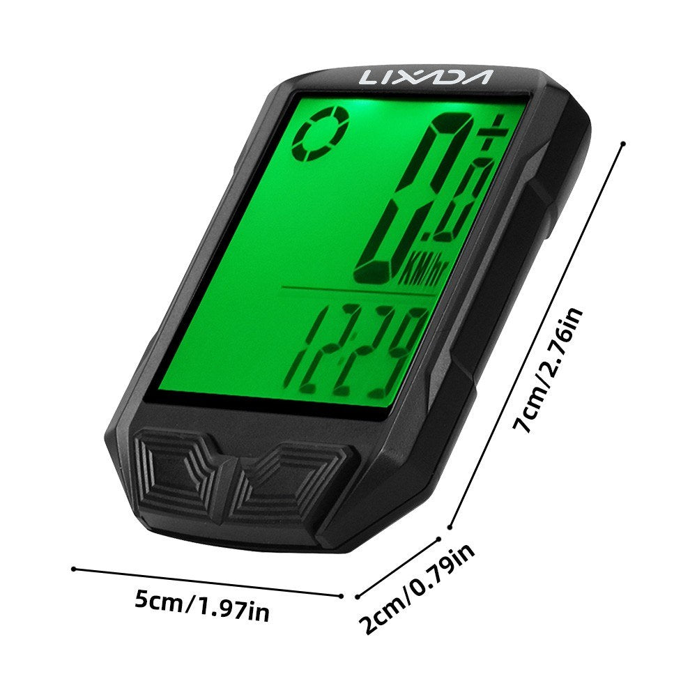 Waterproof Wireless Bicycle Computer with Large Screen, 18 Functions, Auto On/Off, Calorie & Fat Burn Calculator, EL Backlight, Maintenance Program, KM/MI Options