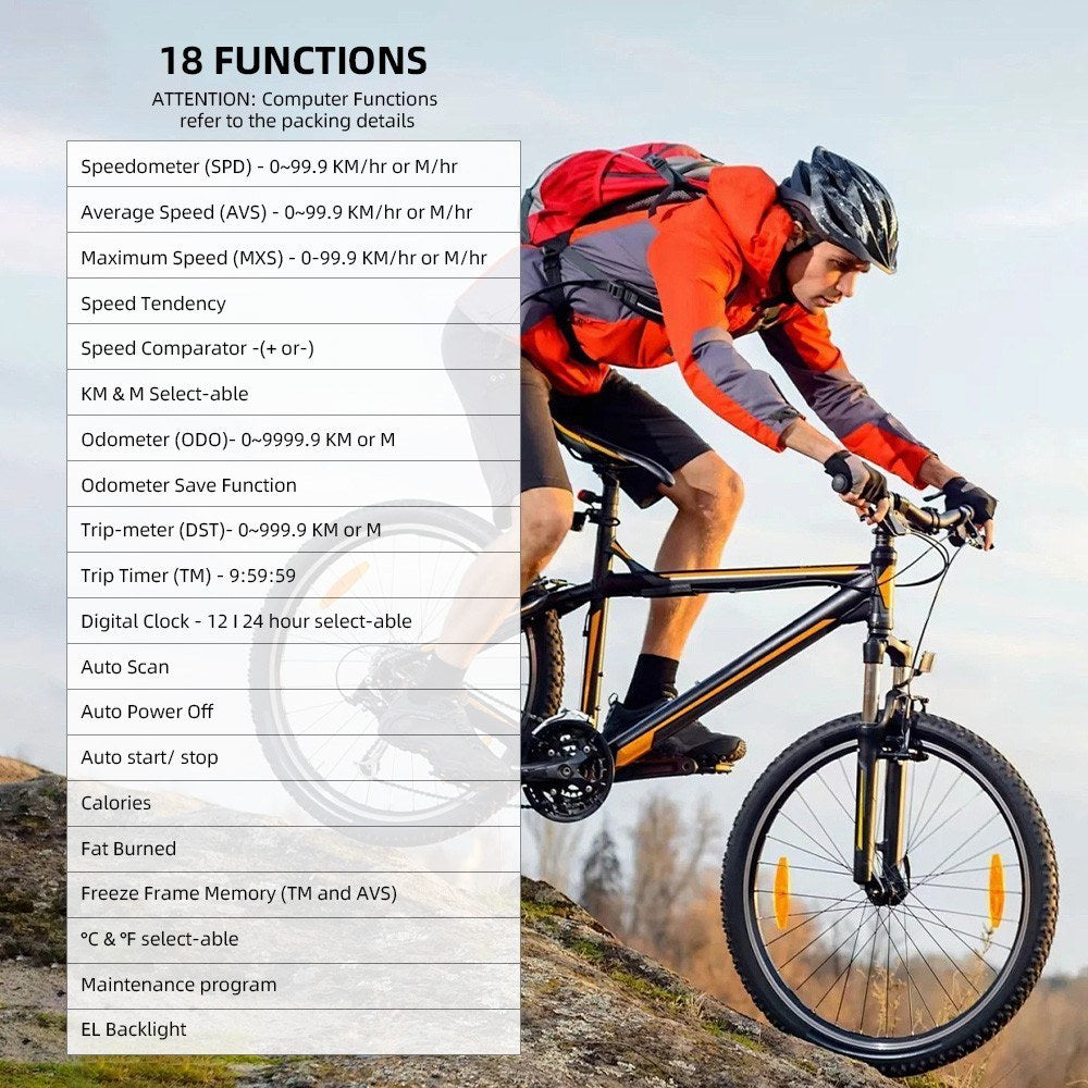- 18 Versatile Functions: Include speedometer, average speed, maximum speed, trip meter, trip timer, and more, catering to all your cycling needs. Ideal for road bikes and cycling aficionados.