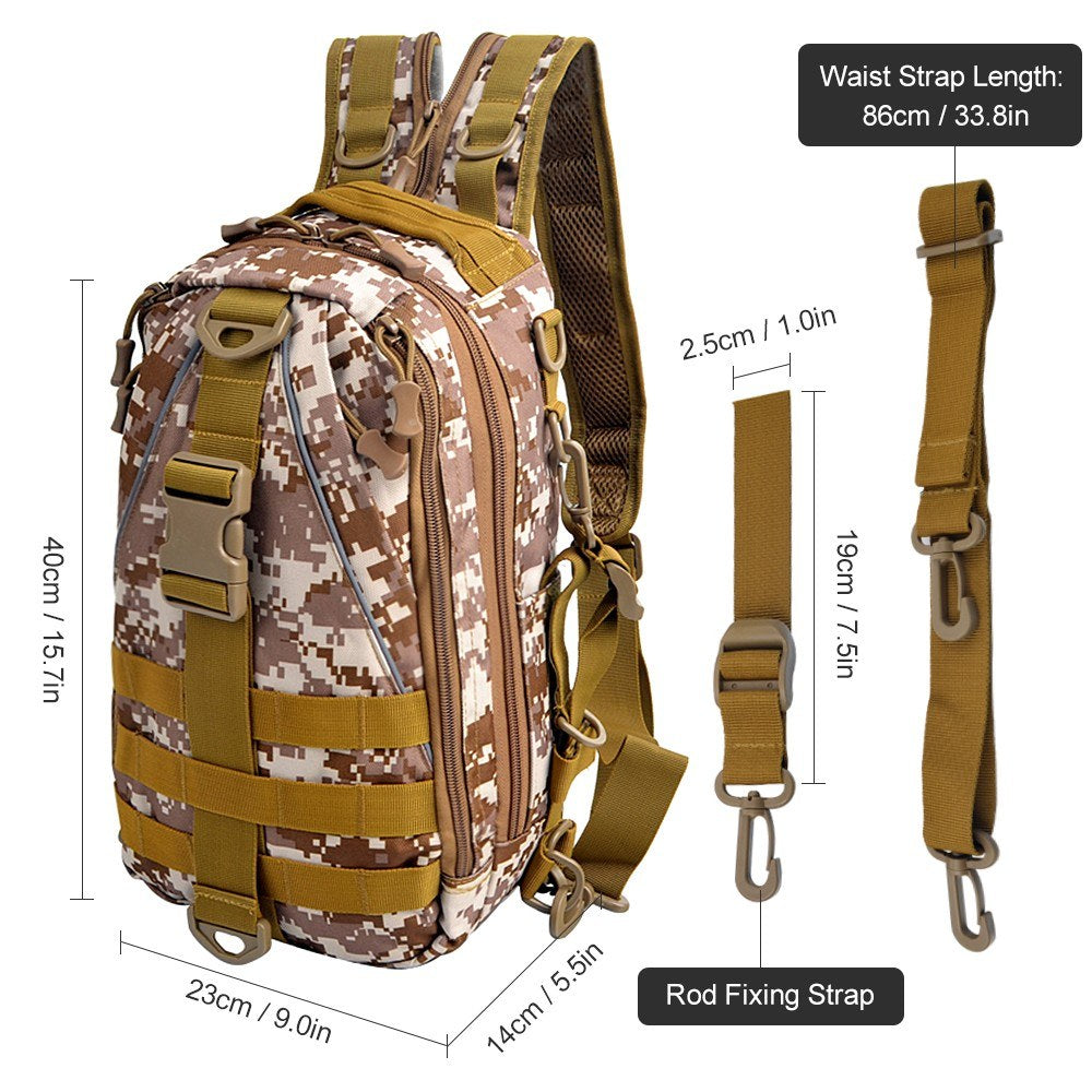 This versatile fishing bag adapts to your style, transforming from a backpack to a crossbody bag with its zippered shoulder strap. It's the ideal companion for fishing, camping, hiking, and various other outdoor adventures.