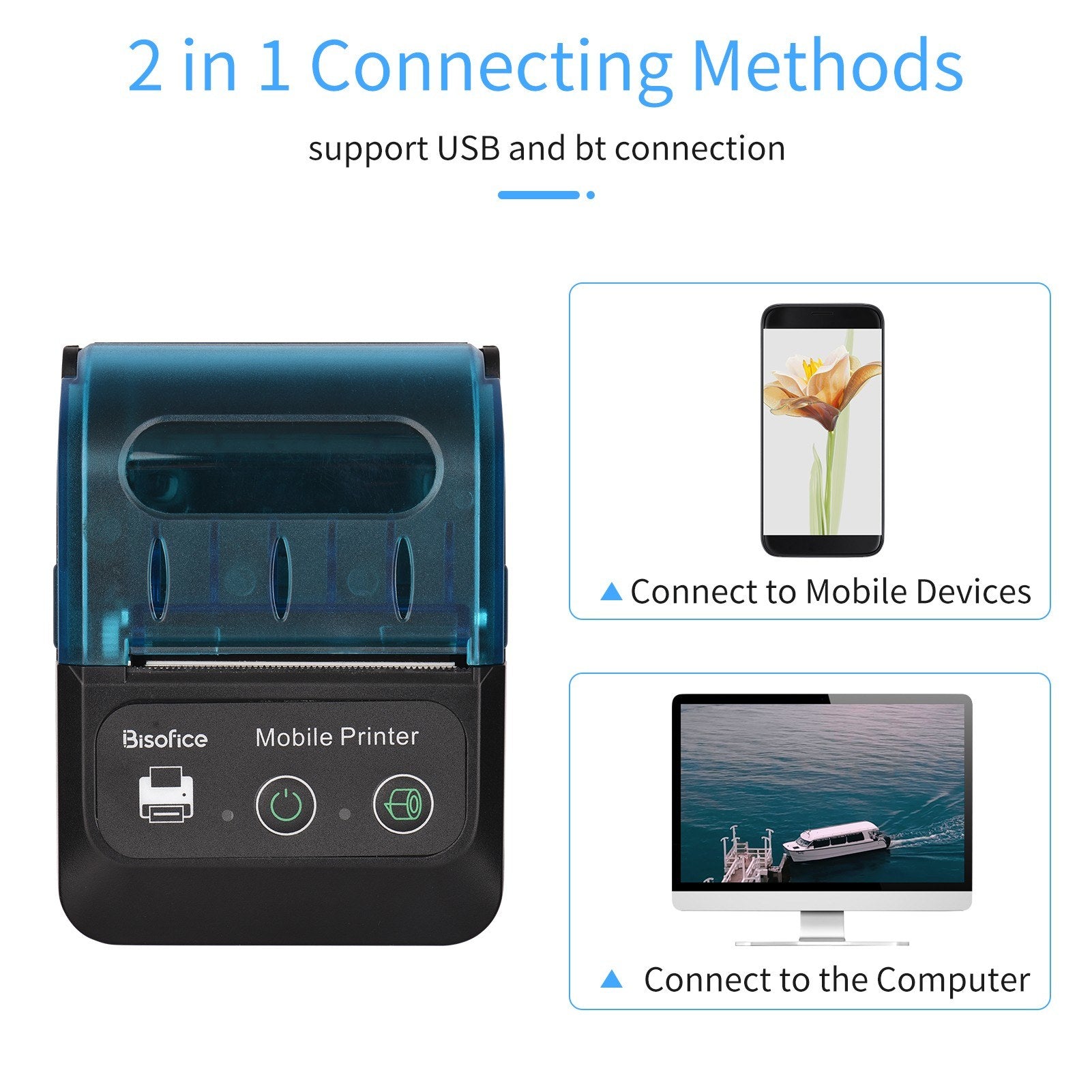 Bisofice 58mm Portable Thermal Receipt Printer + 1 Roll