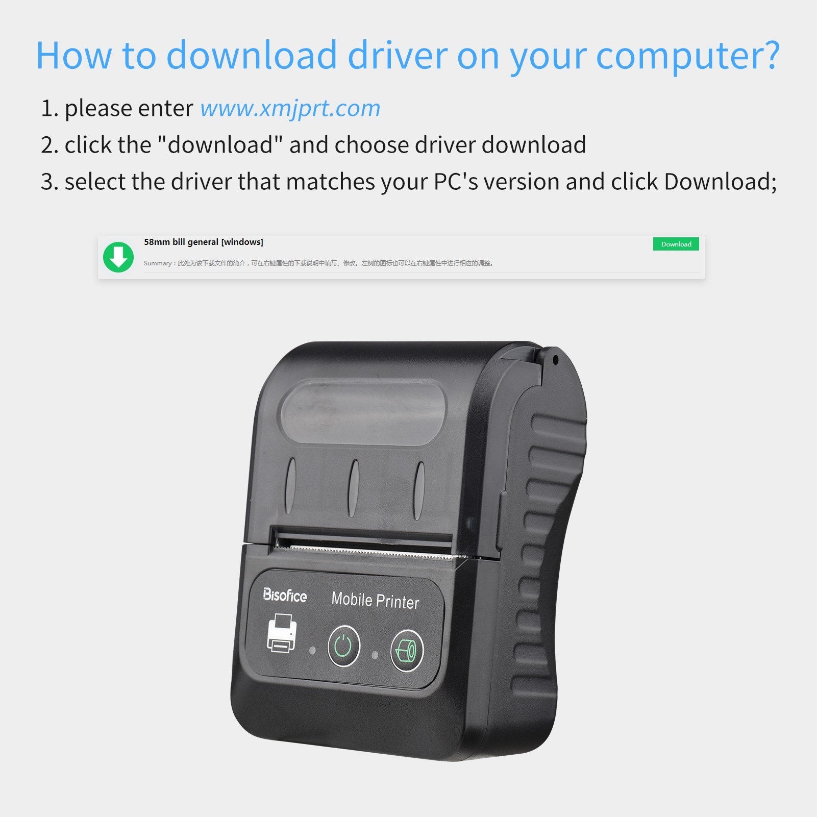 - Please download the driver at www.xmjprt.com.