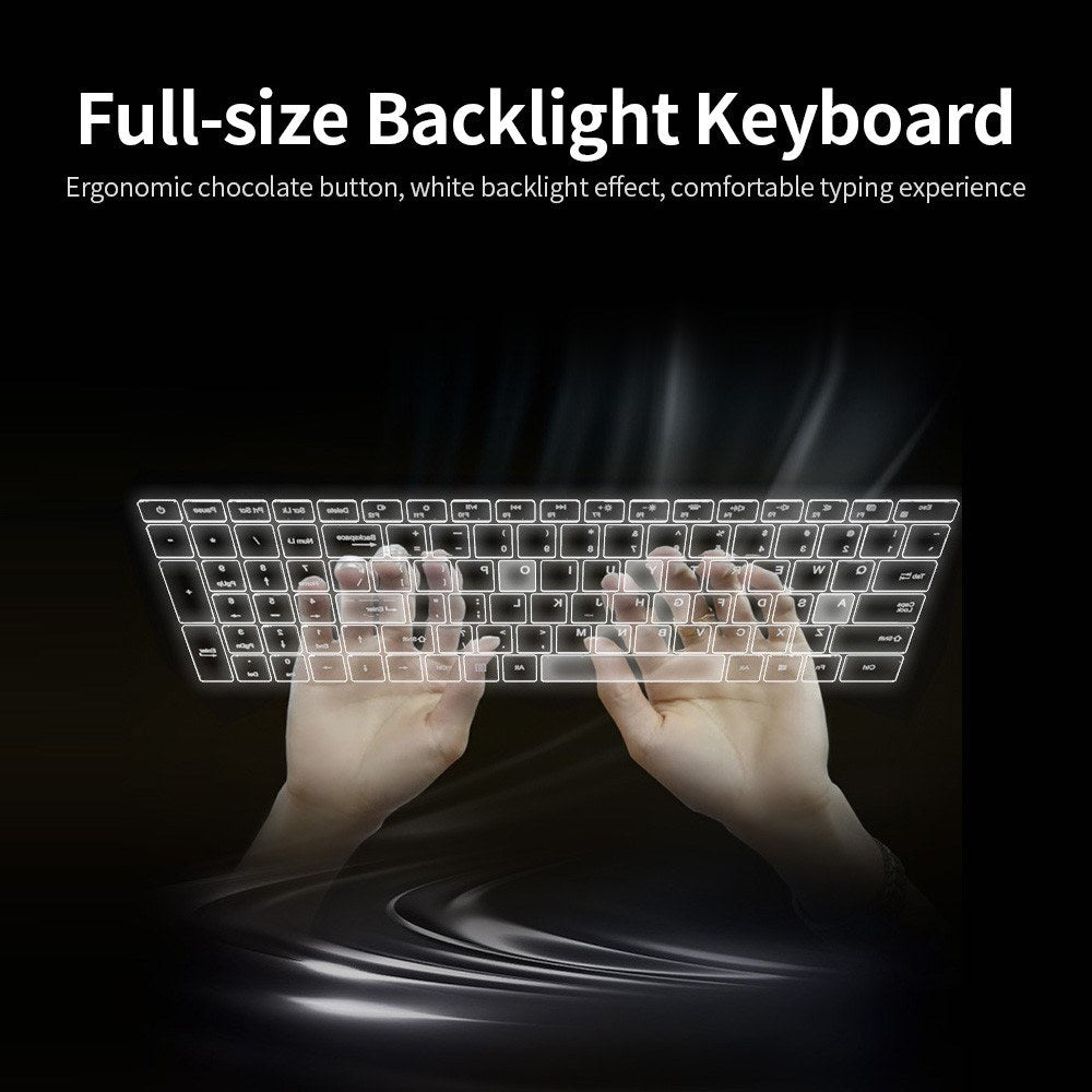 - Ergonomic Keyboard: Full-size white backlit keyboard with ergonomic chocolate buttons for a comfortable typing experience.