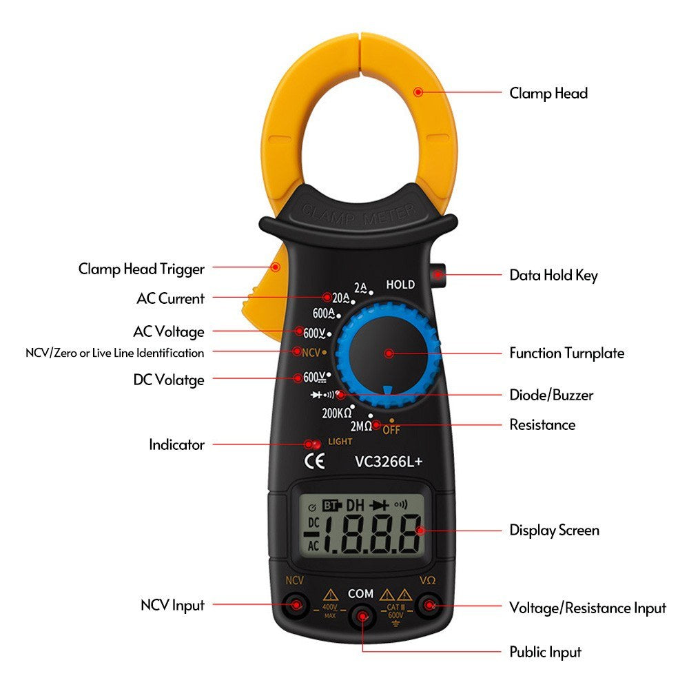 - Multifunctional: This multimeter can accurately measure AC/DC Current, AC/DC Voltage, Resistance, Diode, Earth, and Live Line.