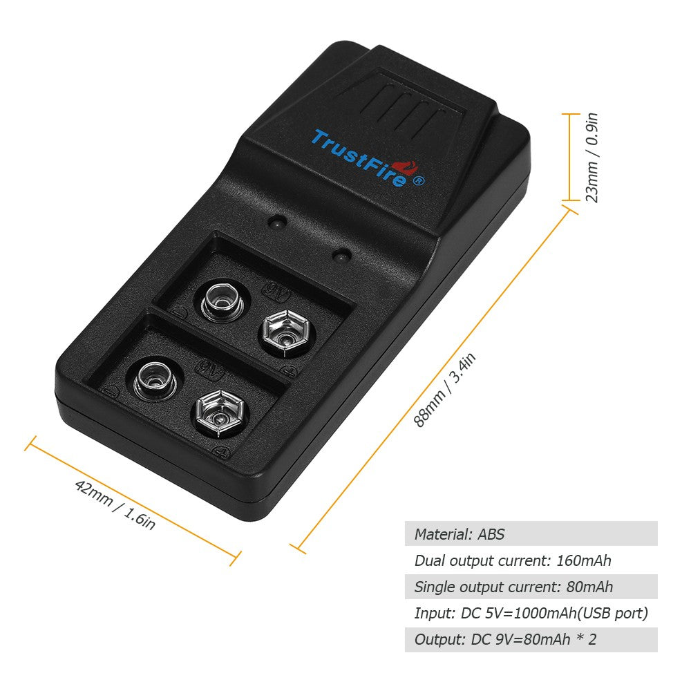 Micro USB Charger for 9V Rechargeable Lithium Batteries