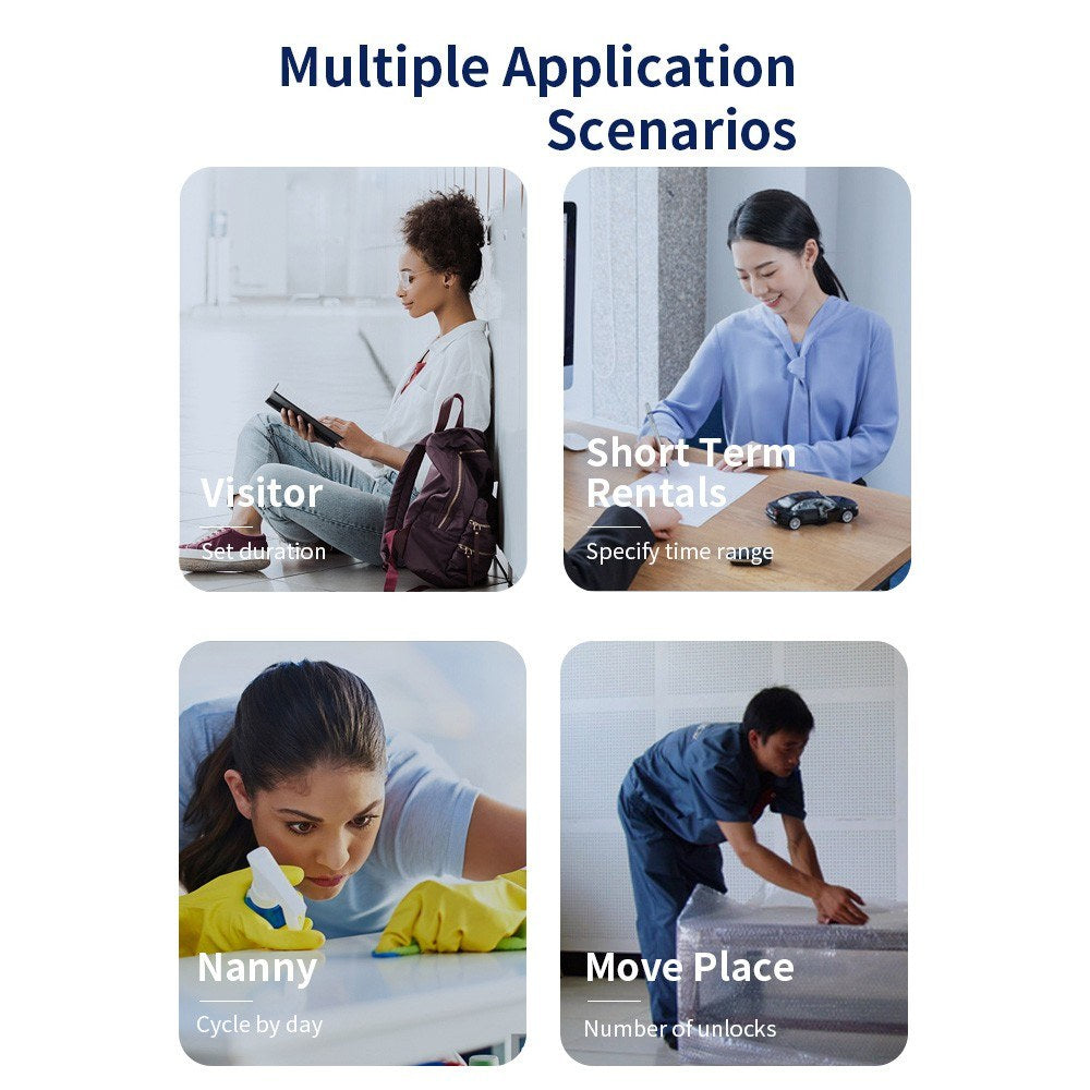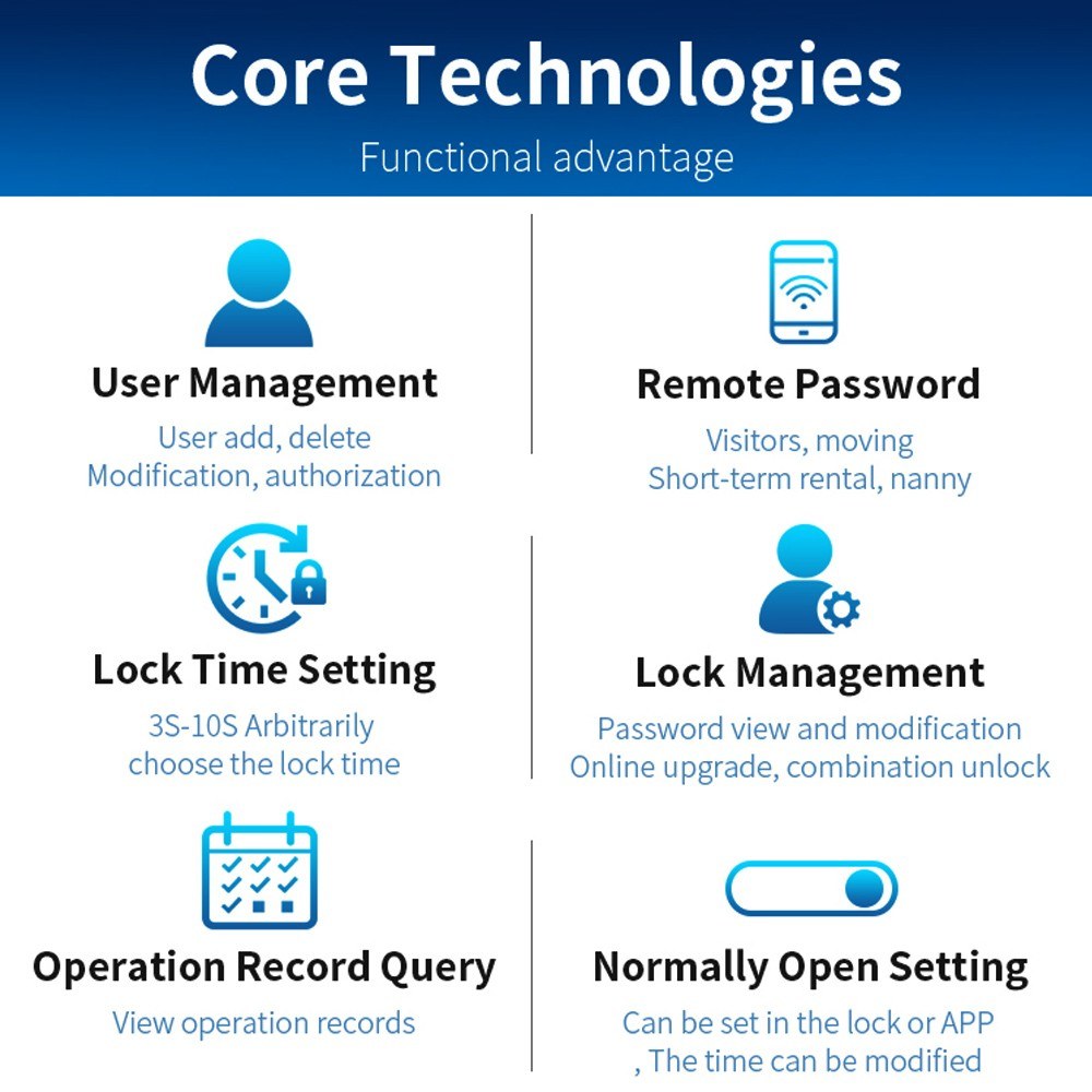 Lower Power Consumption: Powered by 4 AAA alkaline batteries (not included), our lock boasts a battery life of approximately one year. A voice prompt will alert you when the batteries are nearly depleted. Additionally, a micro USB cable is included for emergency power supply, ensuring you are never locked out.