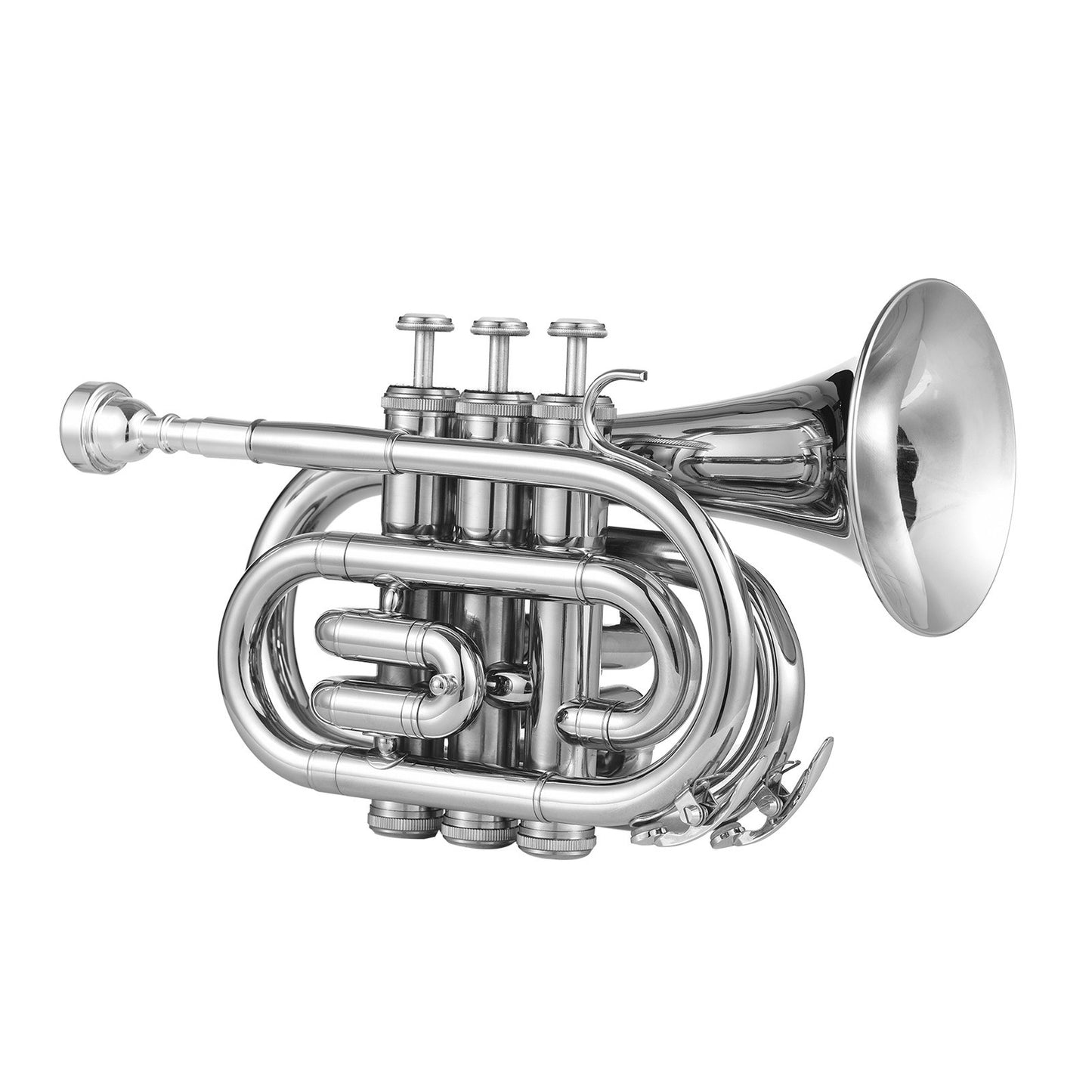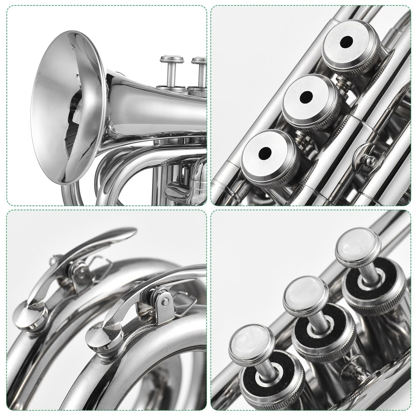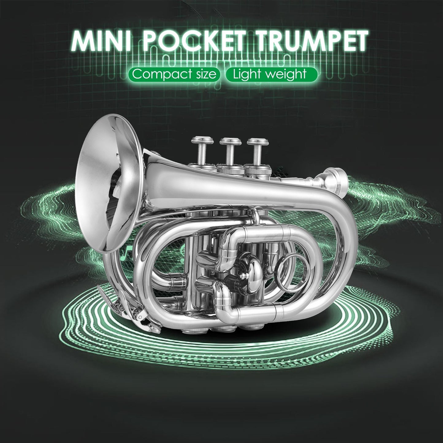 Portable Bb Mini Pocket Trumpet with Mouthpiece, Carry Bag, Gloves & Cleaning Cloth