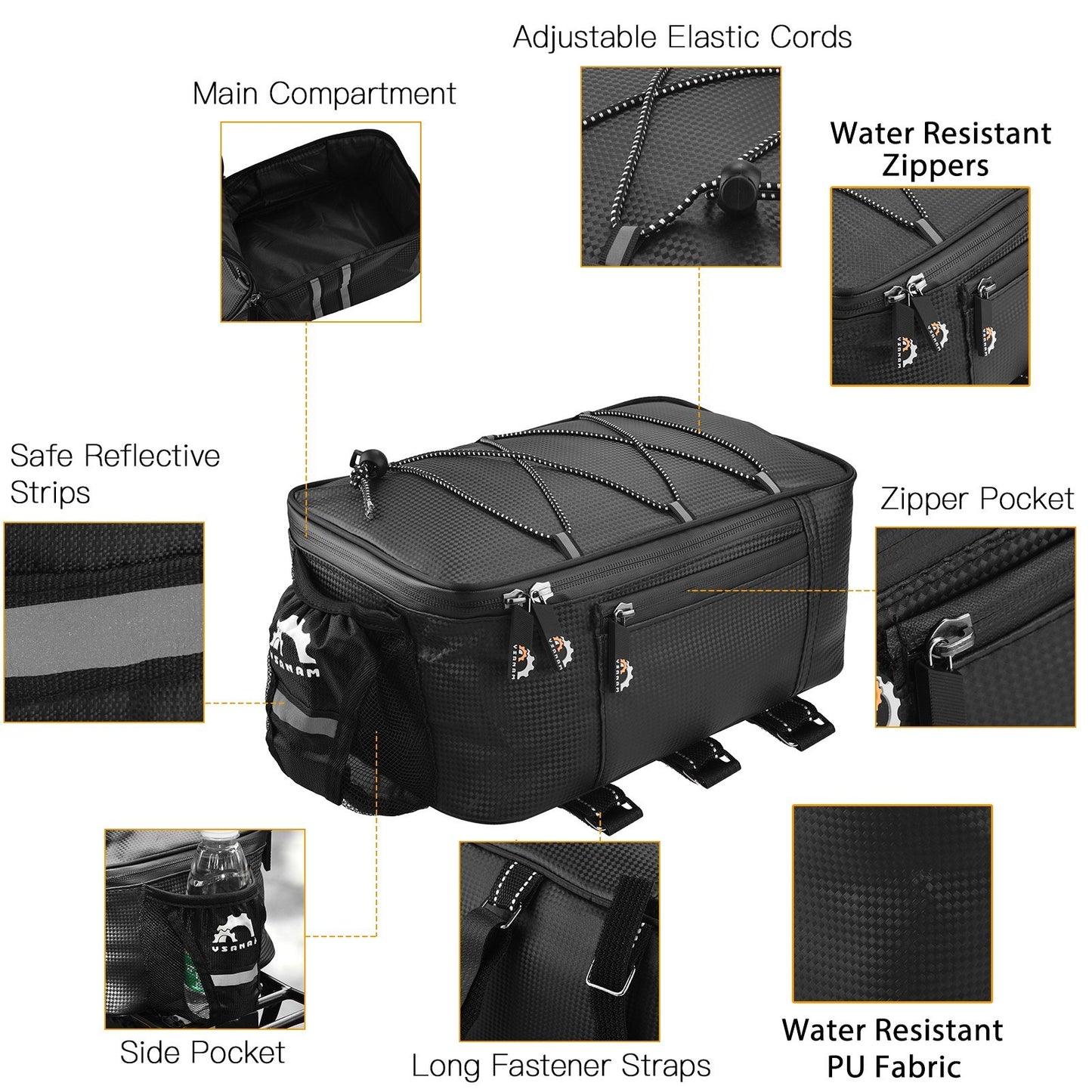 Waterproof Bike Trunk Bag with Rain Cover - Rear Bike Rack Luggage