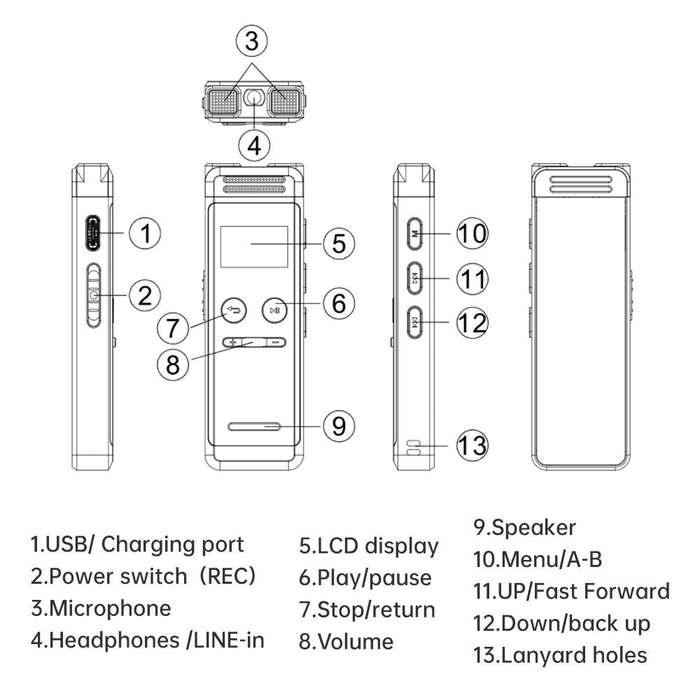 - Easy File Transfer & Multilingual Support: Easily manage your files and music via USB connection. With support for 24 system languages, the recorder is accessible to international users.