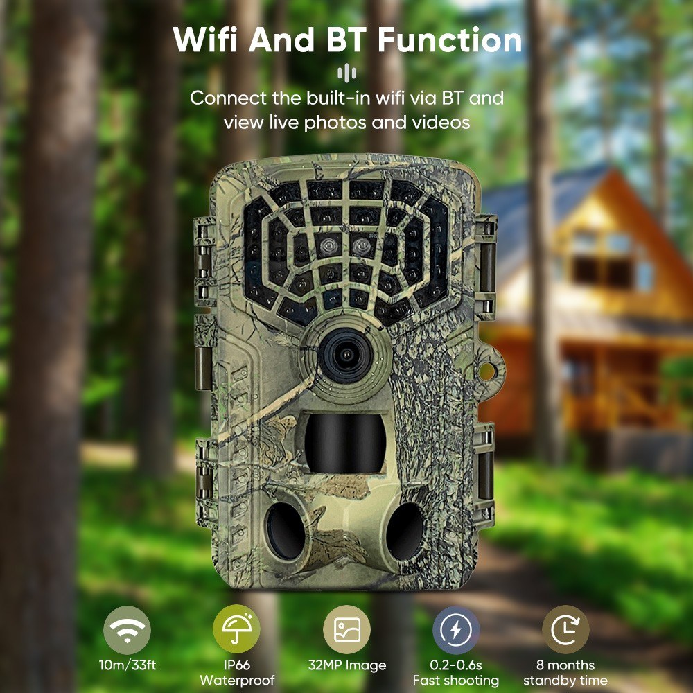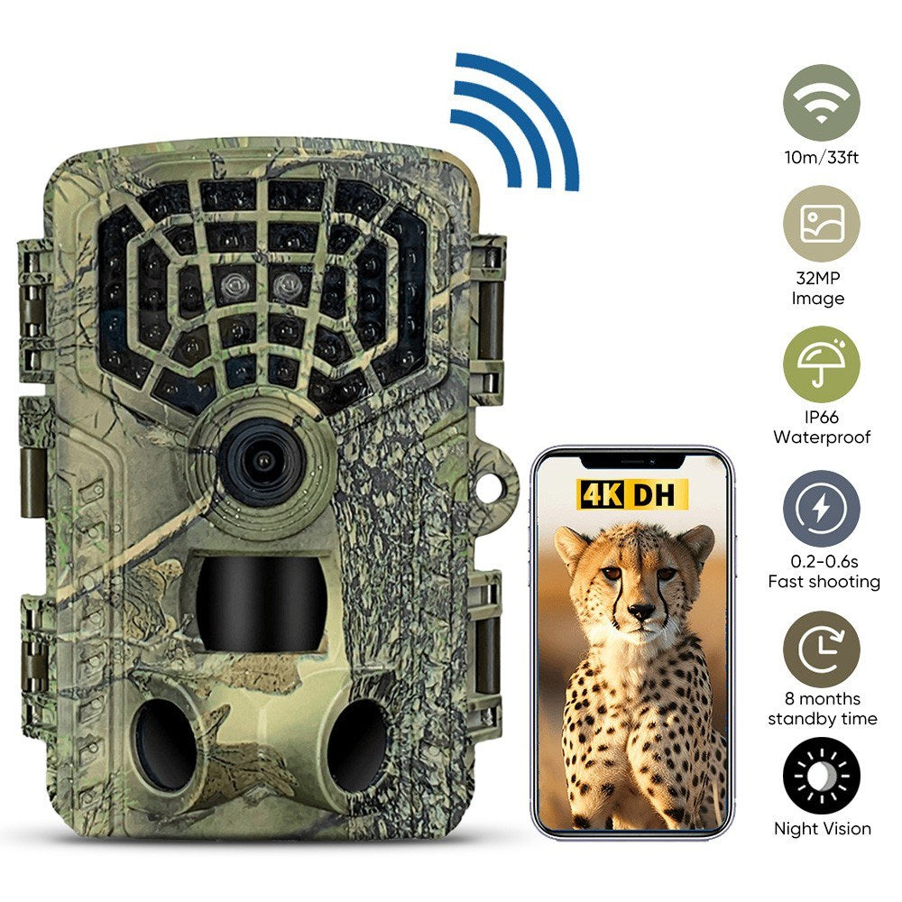 32MP 4K WiFi Trail Camera with Night Vision & App Control - Waterproof for Hunting & Wildlife Observation