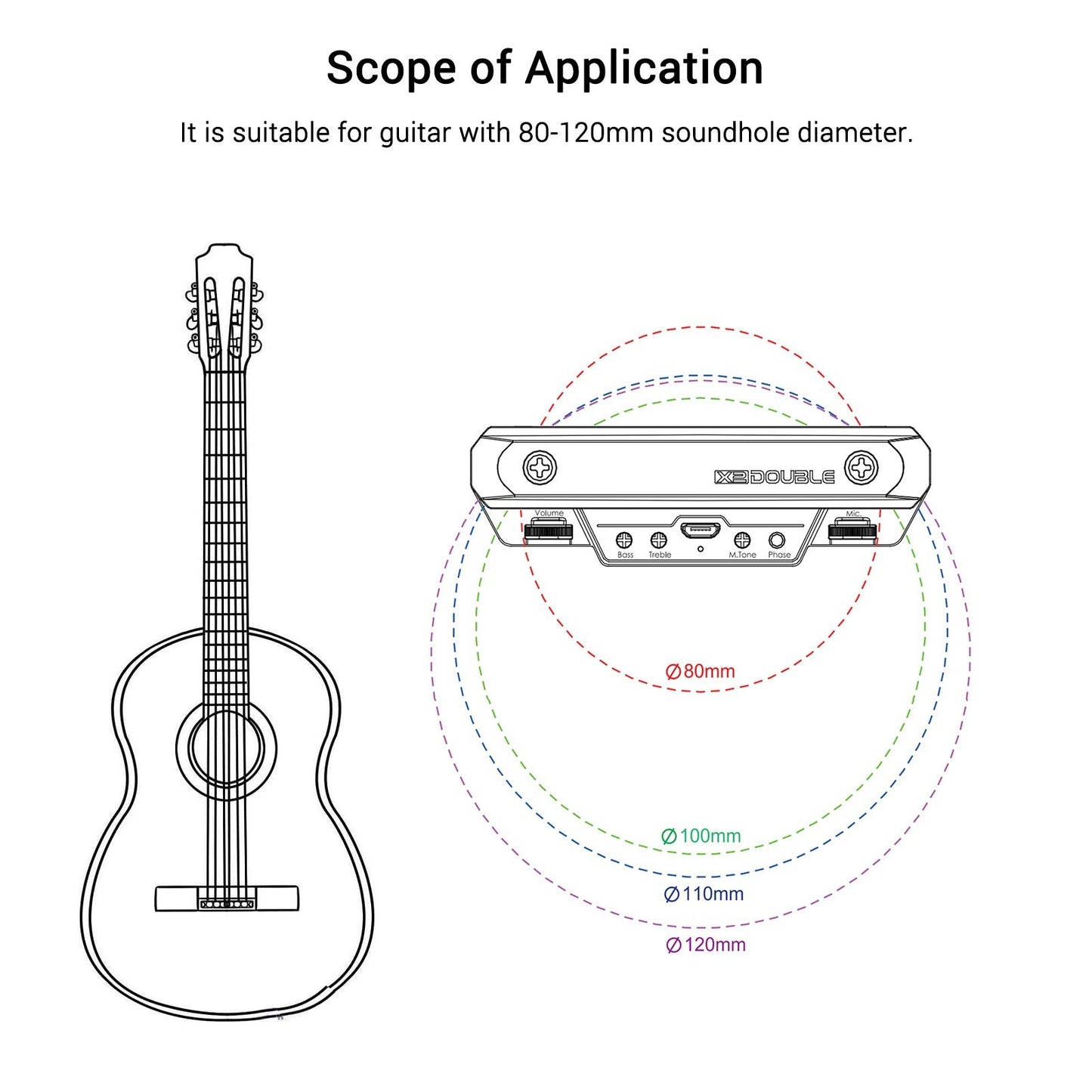 - This stylish guitar preamplifier is designed for acoustic guitars with an 80mm-120mm wide soundhole, allowing for easy installation in a few simple steps.