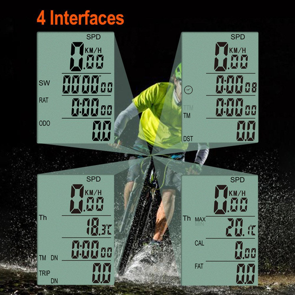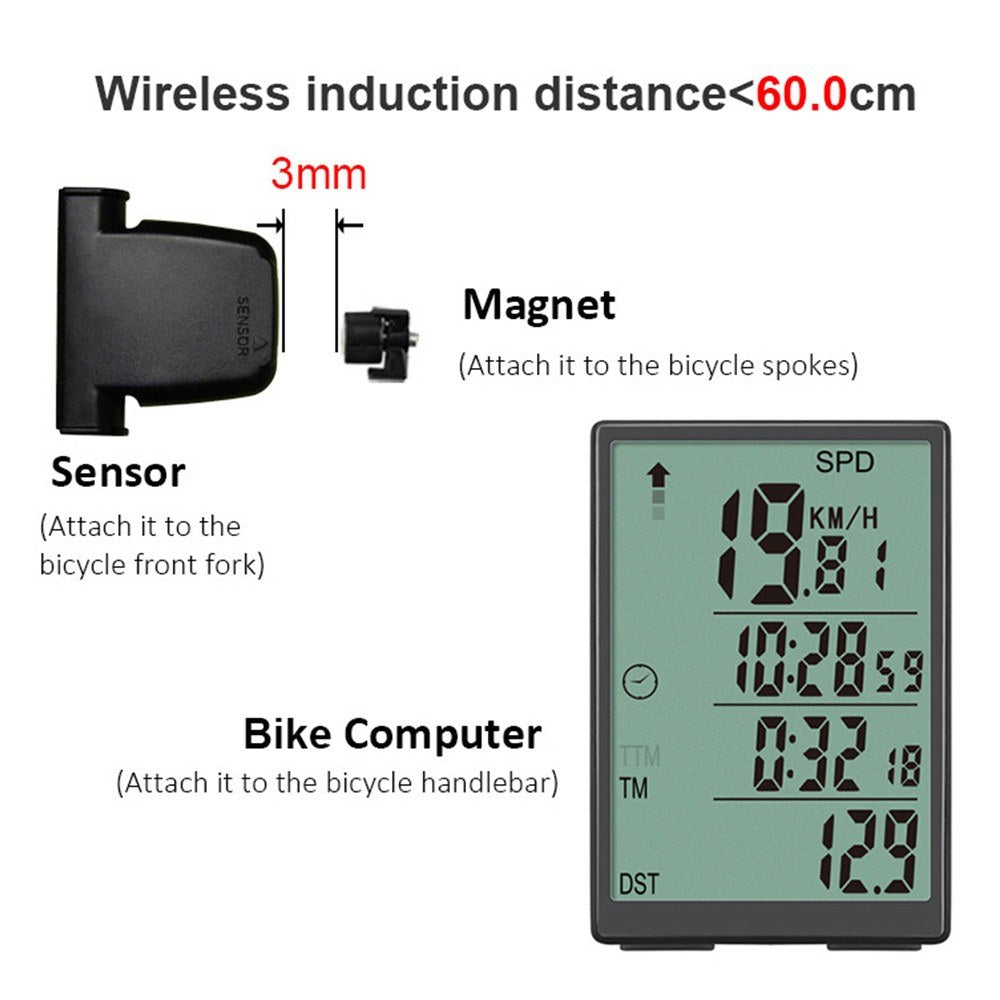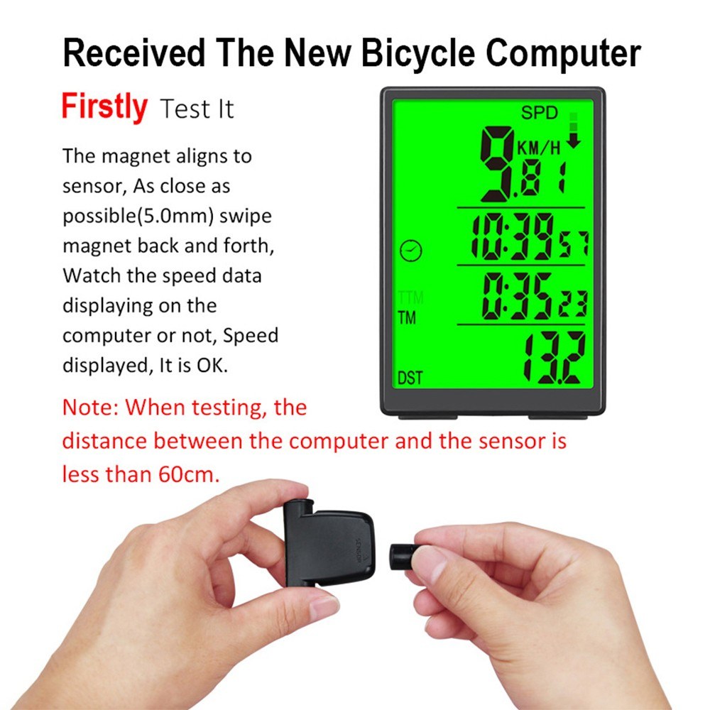 Sunding SD-590 Wireless Bike Computer, Waterproof Speedometer with 3-Inch Green LCD Backlight