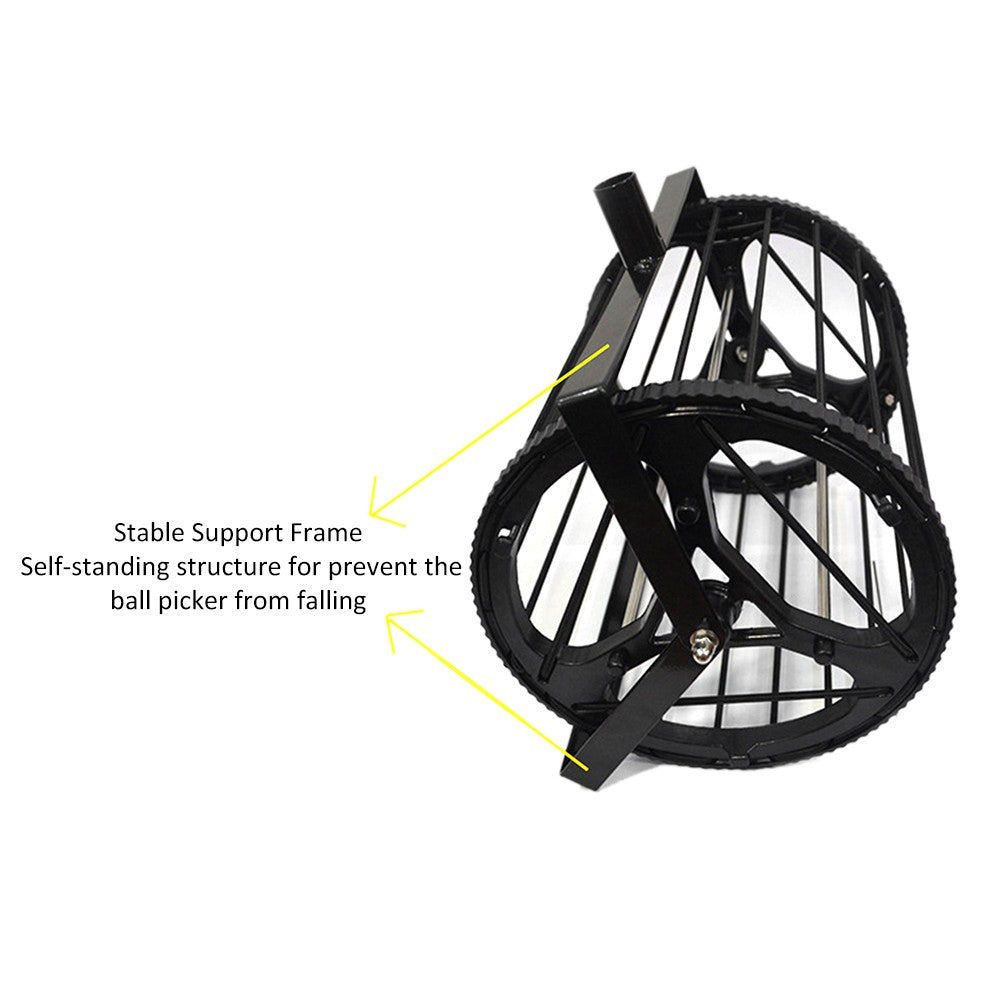 - Convenient support frame lets the table tennis ball picker stand upright when not in use.