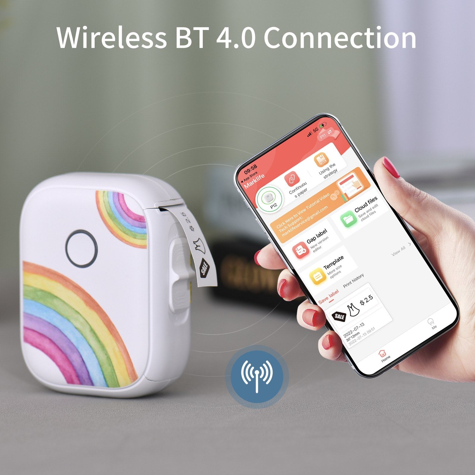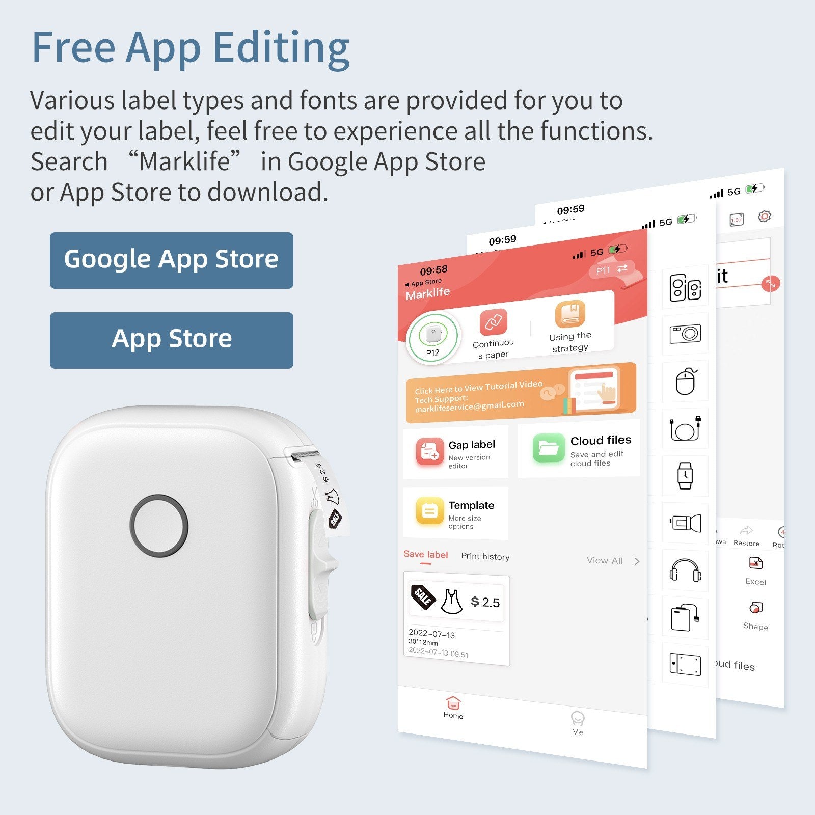 - Free App Printing: Connect via Bluetooth to your smartphone, compatible with both Android and iOS systems. Simply search “Marklife” in Google Play Store or Apple App Store to download. Start designing and printing your stickers anytime.