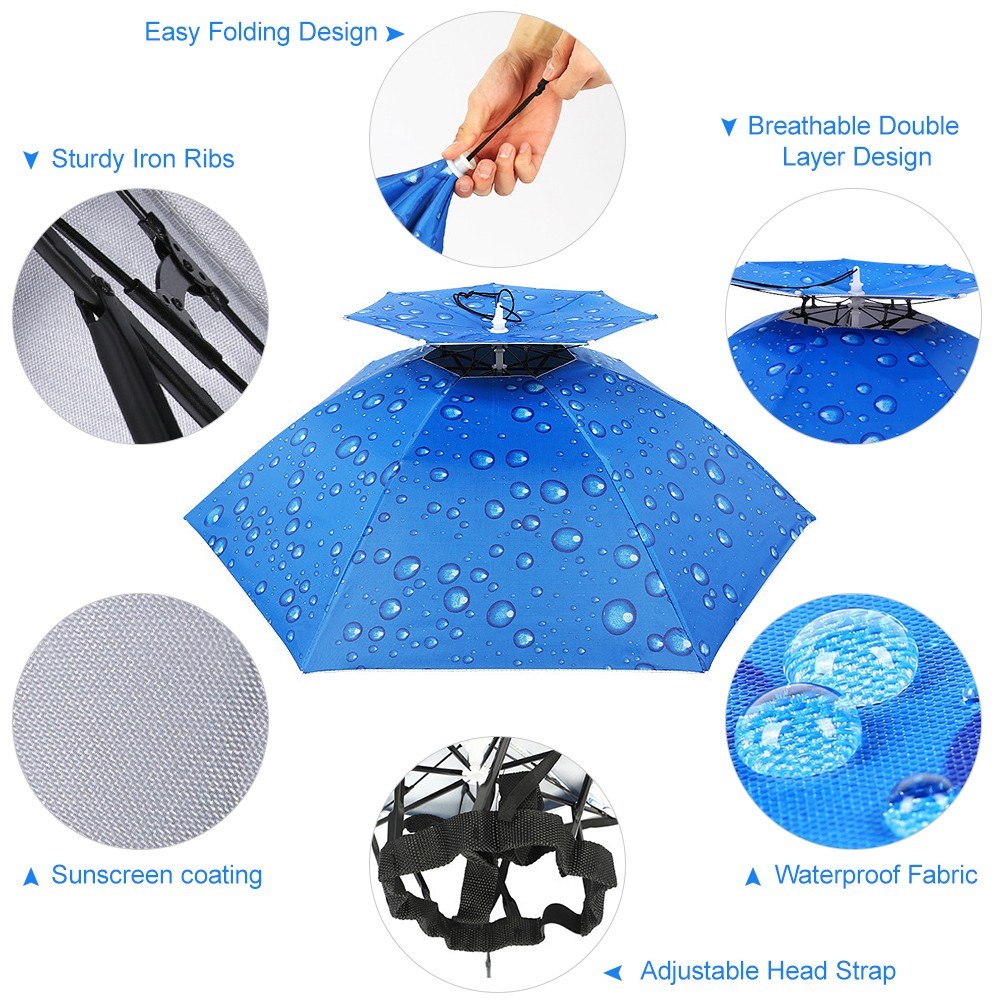 Adjustable Double Layer Umbrella Hat for Sun & Rain - Unisex Folding Cap for Fishing, Camping, Hiking