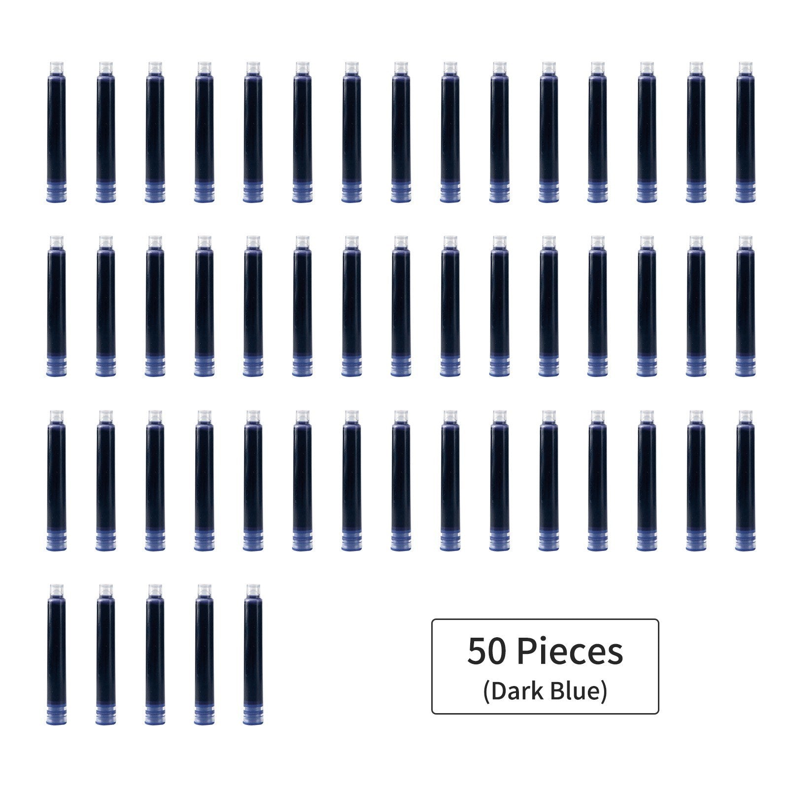 50 Pack Dark Blue Fountain Pen Ink Cartridges, 3.4mm Bore for Office & School Writing Supplies
