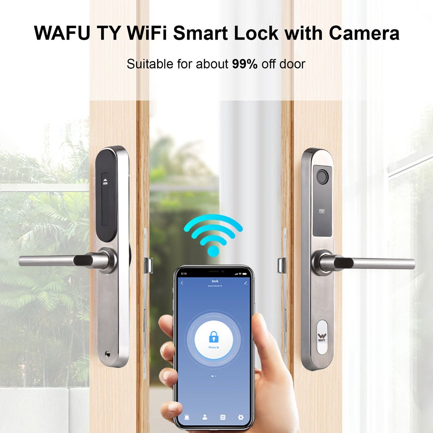 WAFU TY WiFi Smart Lock with Camera, Waterproof Stainless Steel Keyless Biometric Door Handle, 5 Unlocking Methods, App Controlled for 40-120mm Office/Home/Bedroom Doors