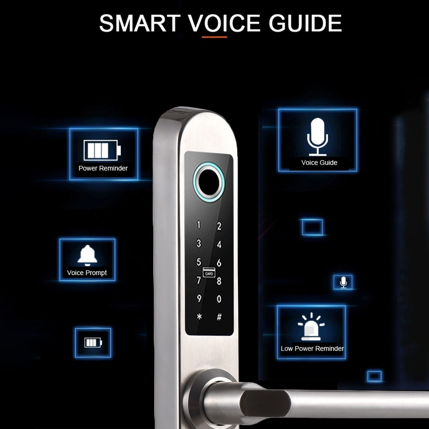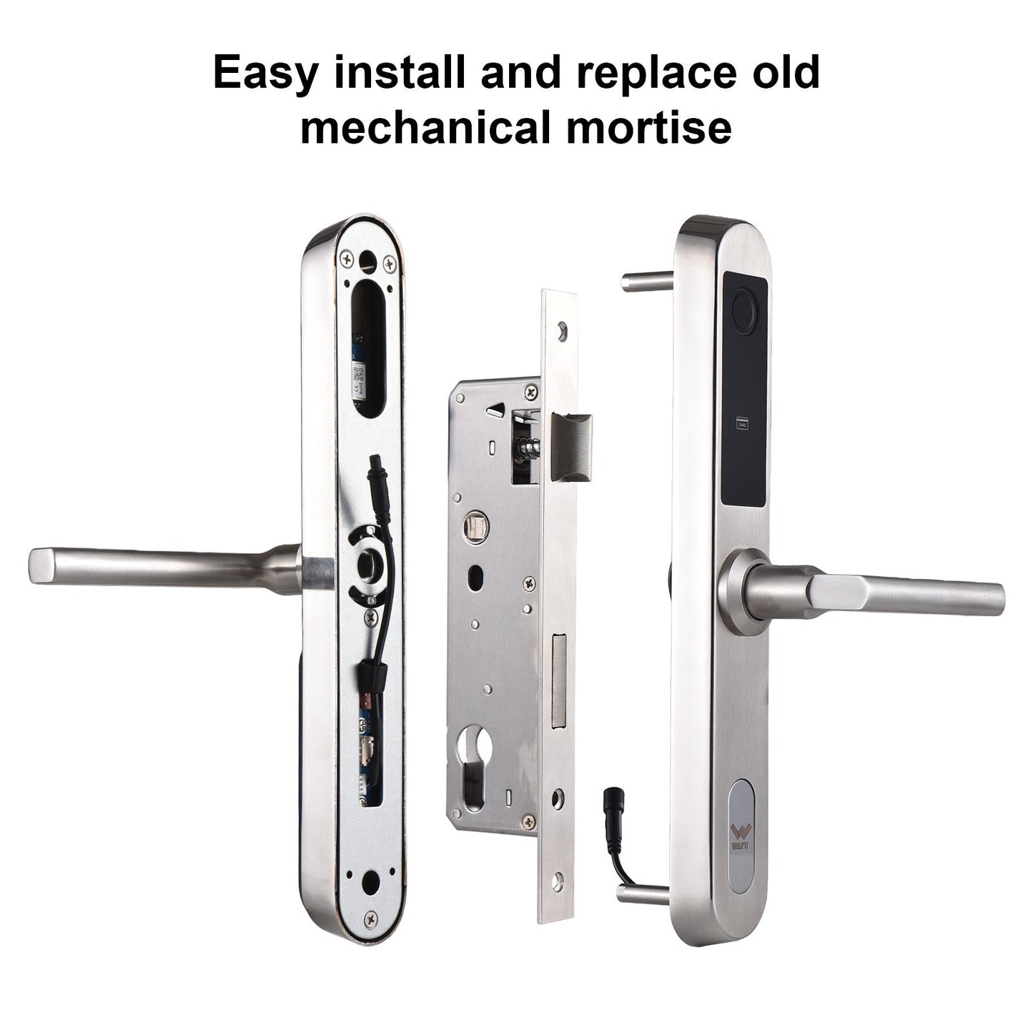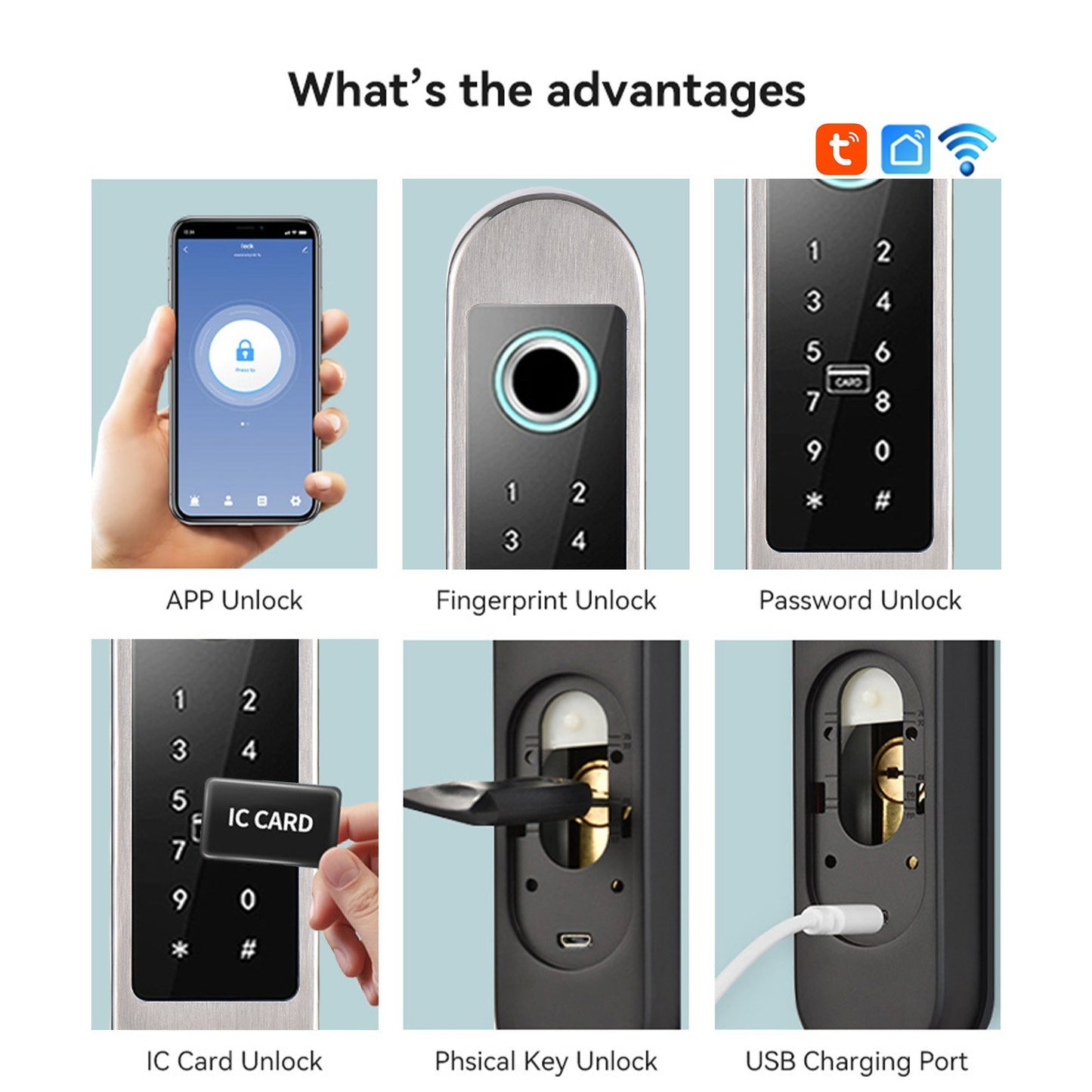 Enhanced Security: The TY WiFi 304 Stainless Steel Smart Door Lock offers five unlocking methods - fingerprint, card, password, app, and key - ensuring advanced security for your home. The unique nature of your fingerprint guarantees unparalleled safety, utilizing semiconductor technology and biometric features to prevent duplicate fingerprints. Crafted from durable stainless steel, this lock provides reliable protection for your front door.