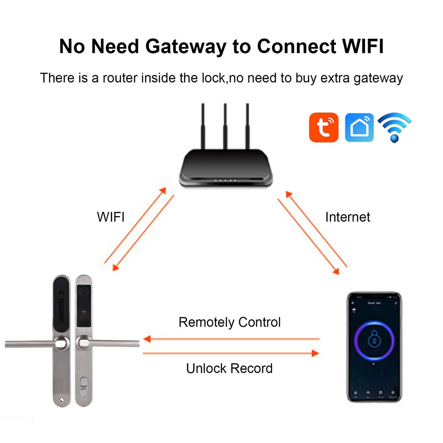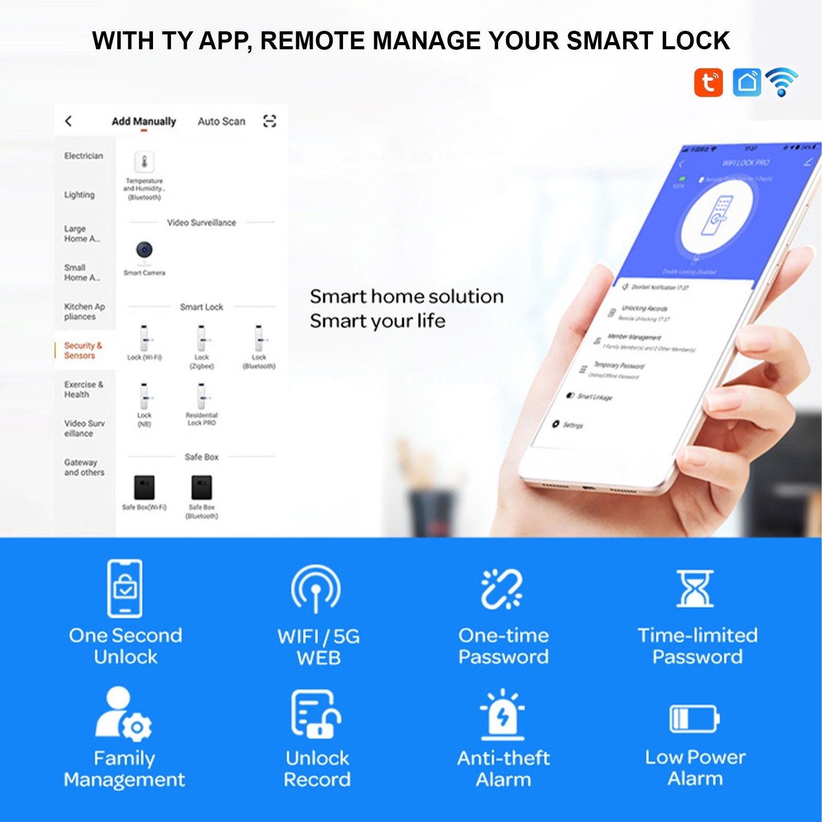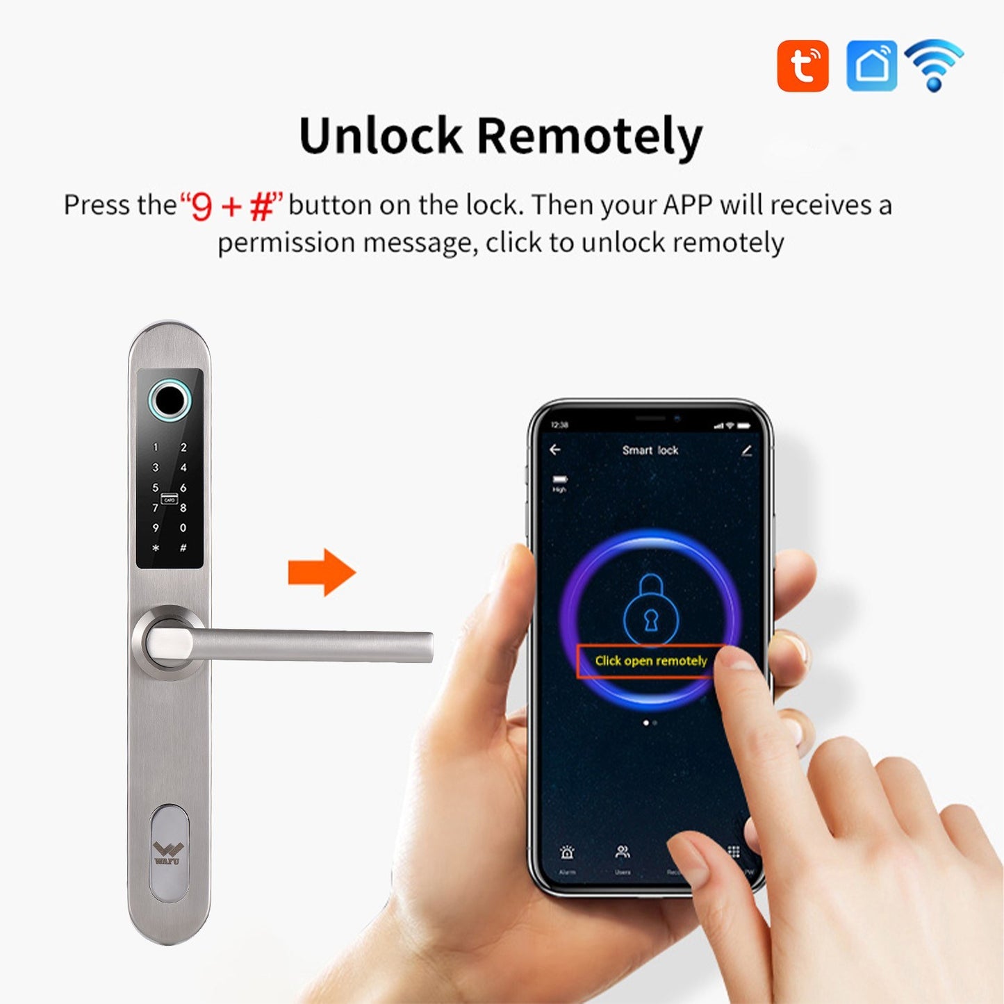 Enhanced Security: The TY WiFi 304 Stainless Steel Smart Door Lock offers five unlocking methods - fingerprint, card, password, app, and key - ensuring advanced security for your home. The unique nature of your fingerprint guarantees unparalleled safety, utilizing semiconductor technology and biometric features to prevent duplicate fingerprints. Crafted from durable stainless steel, this lock provides reliable protection for your front door.
