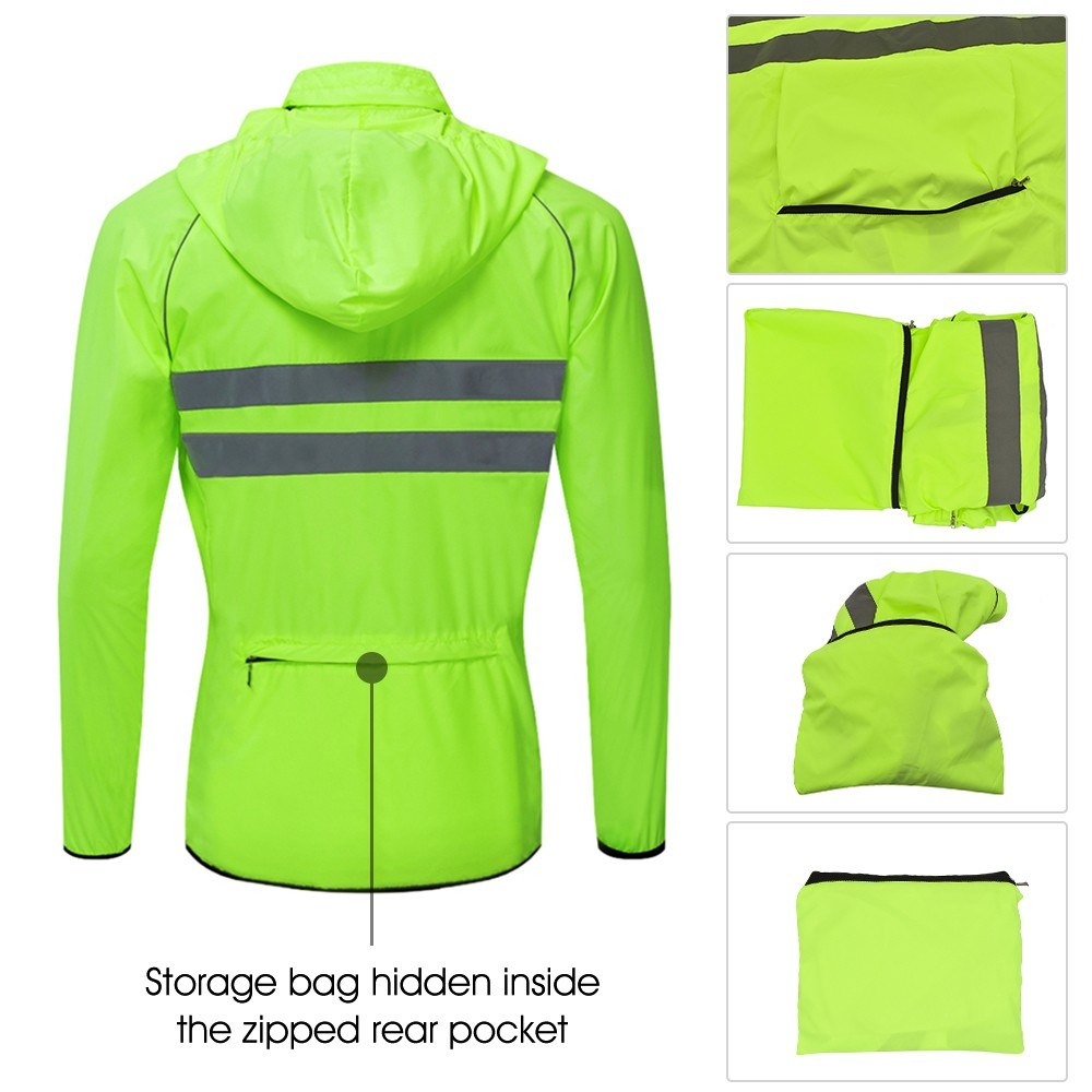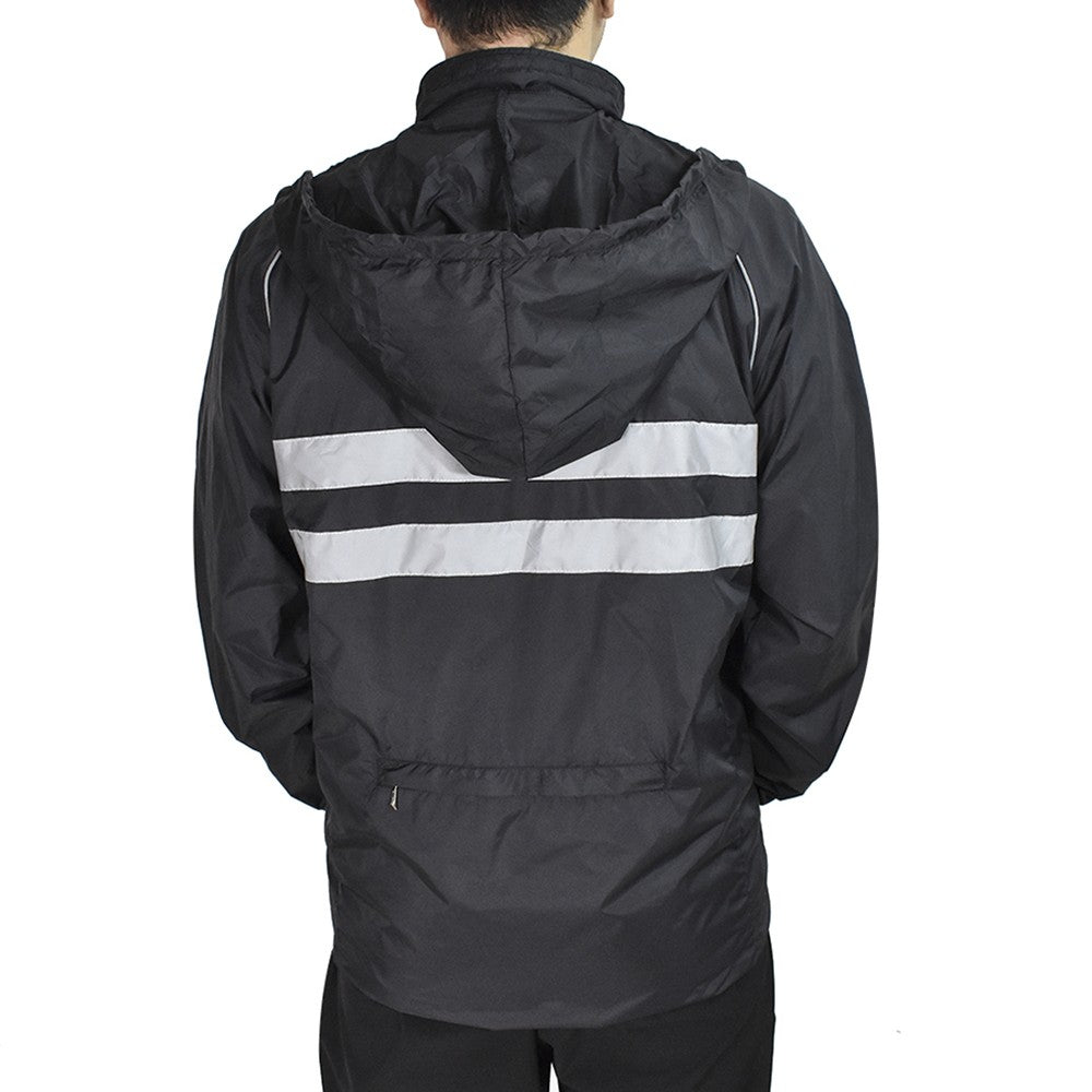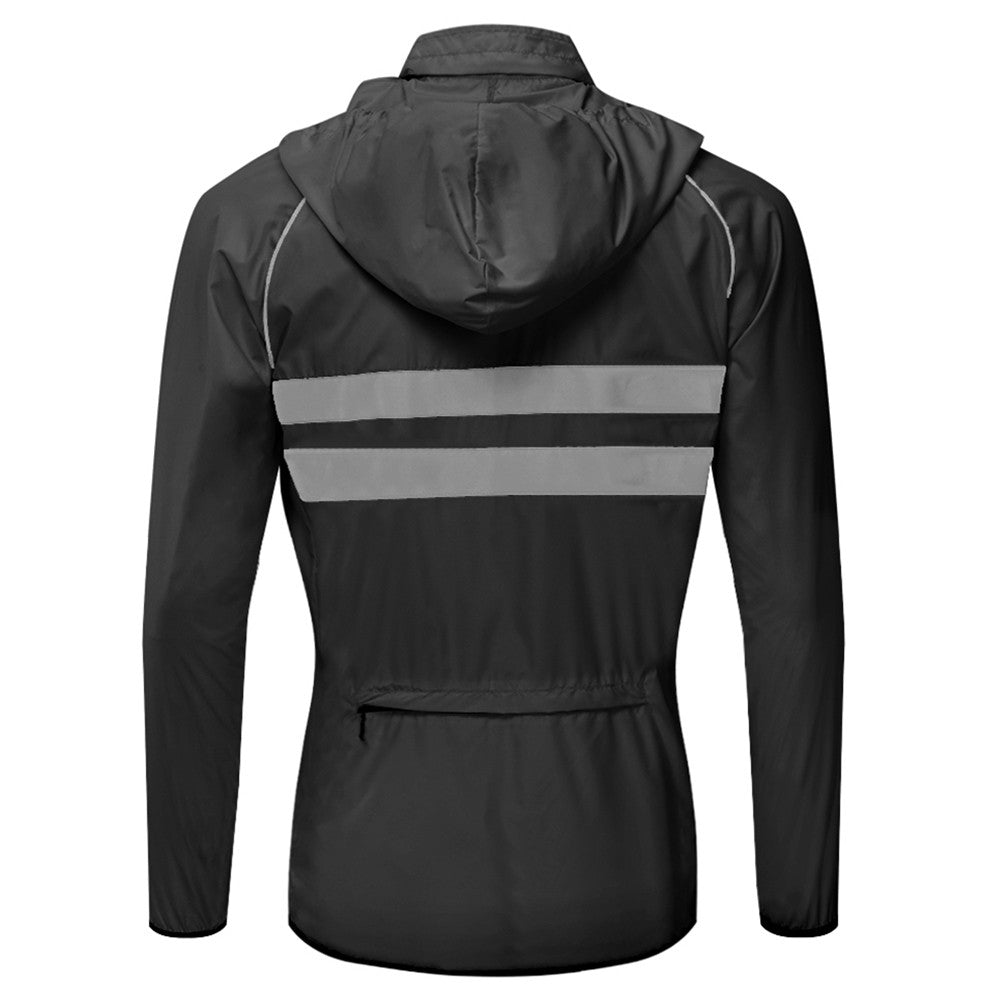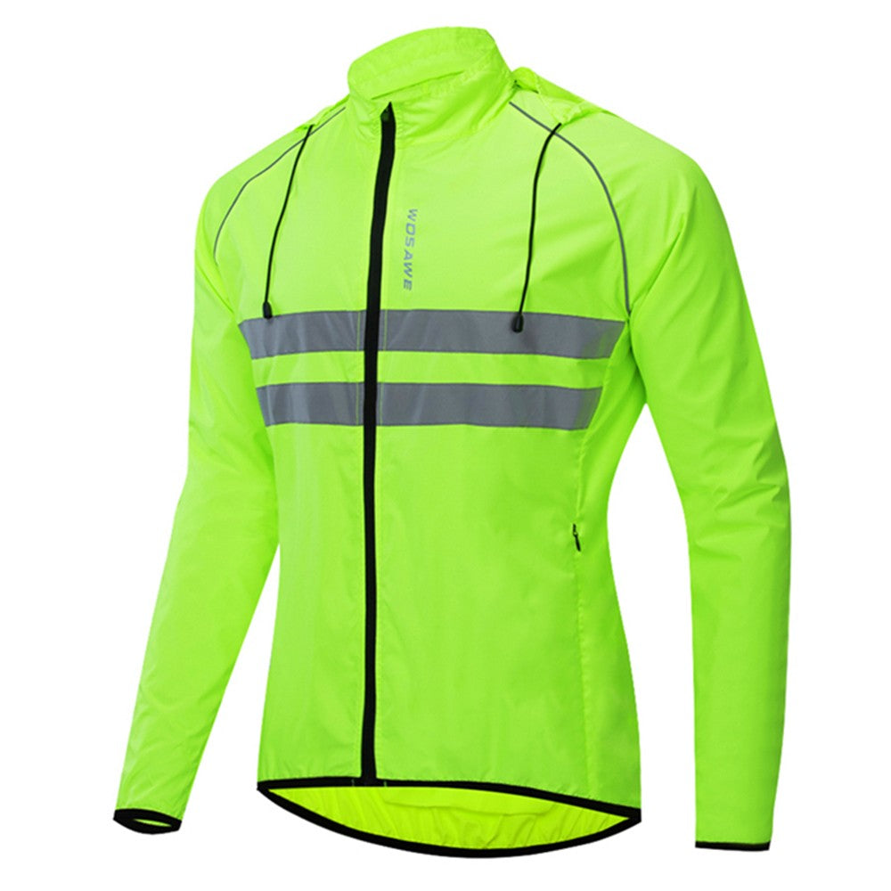 High Visibility Mens Windproof Hooded Cycling Jacket - Breathable Reflective Sports Coat