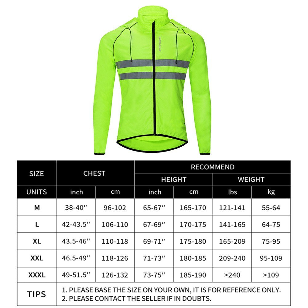 Experience ultimate comfort and safety with our windproof and lightweight cycling jacket, perfect for all your outdoor adventures. Designed to enhance your visibility at night, this jacket ensures a worry-free ride every time.