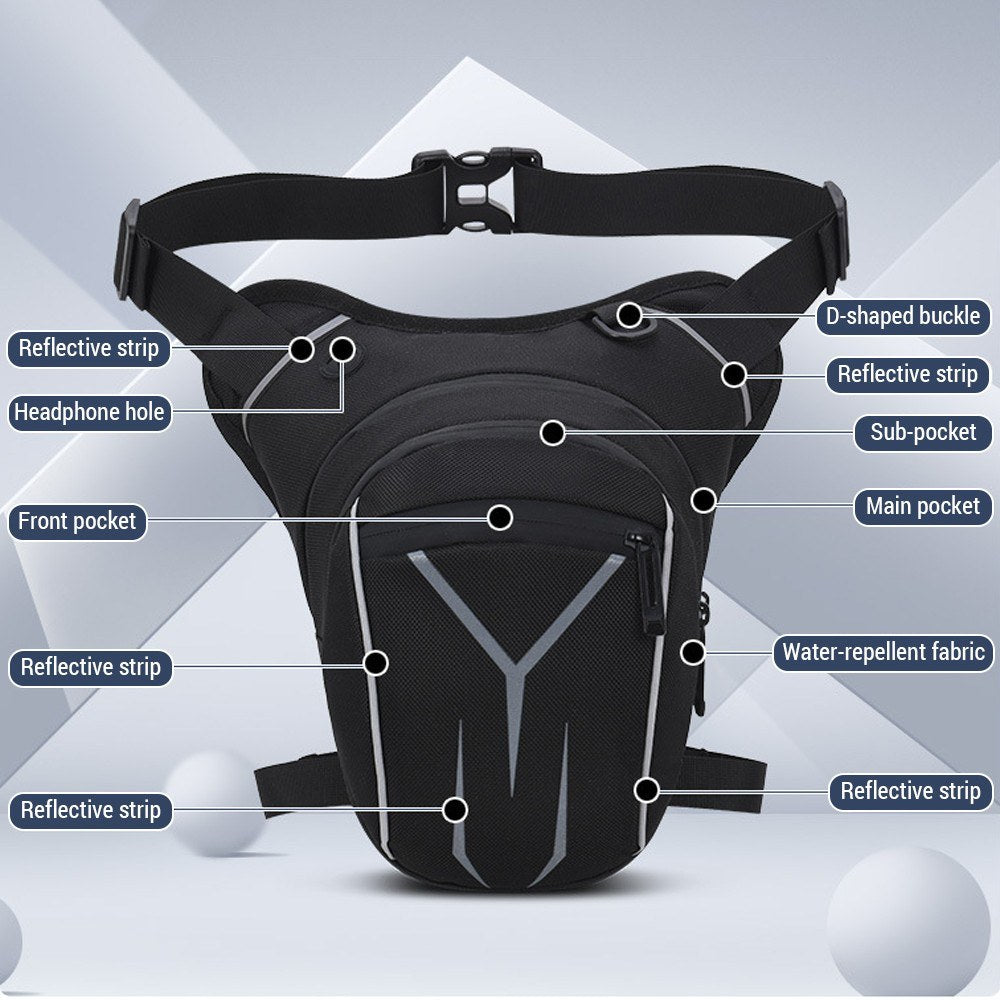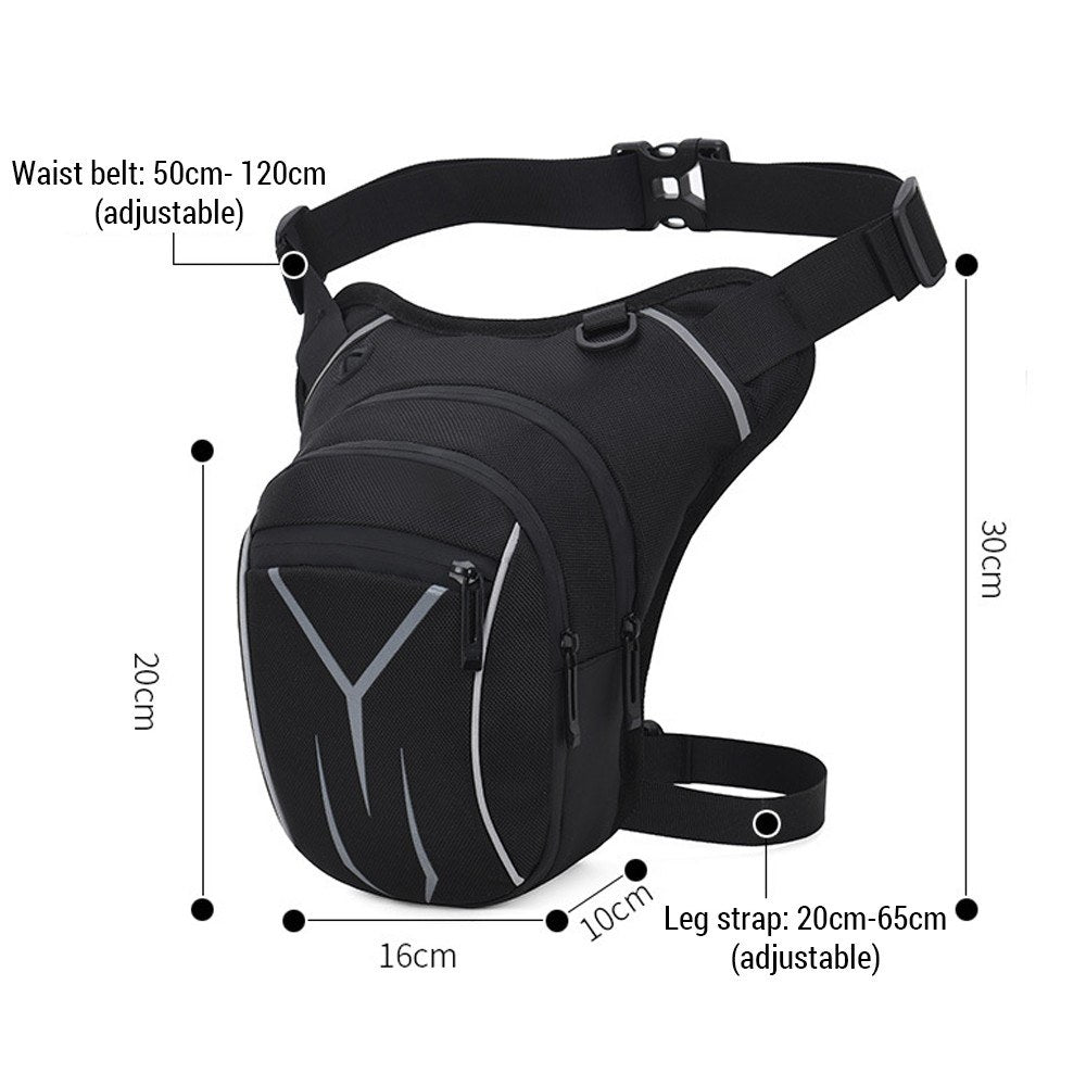 - Constructed from high-quality polyester and Oxford cloth, this motorcycle leg bag is both waterproof and resistant to wear and tear.