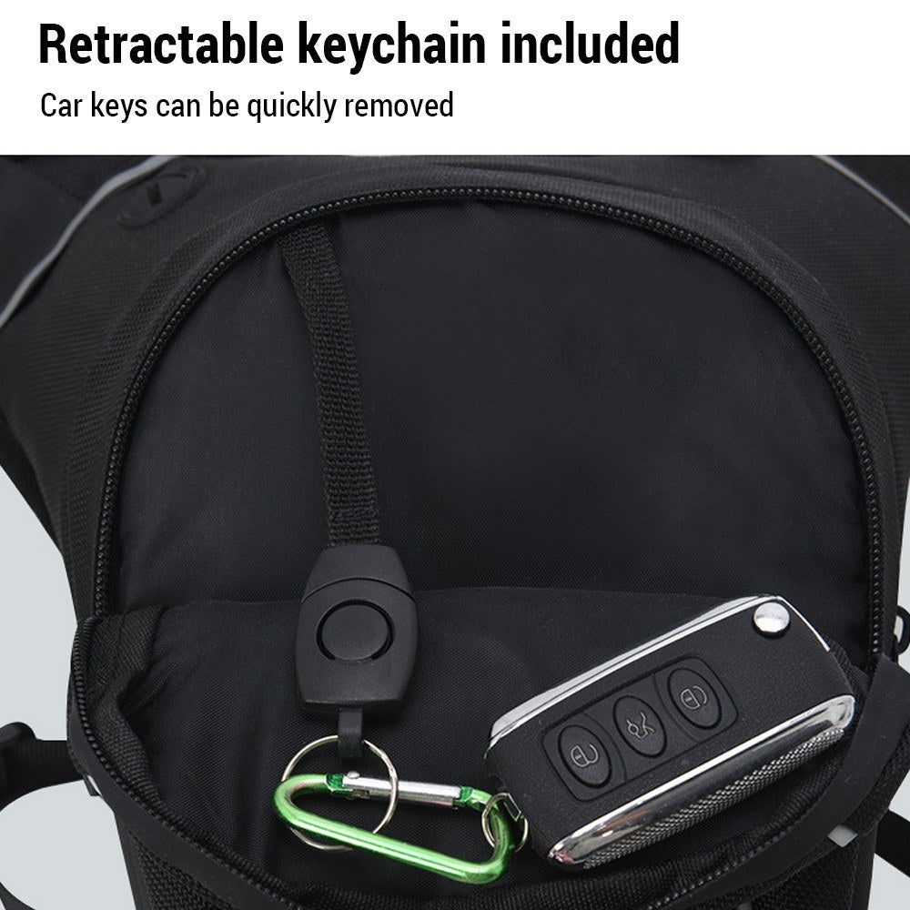 This leg bag comes equipped with an internal key ring clasp for quick and easy access to your keys. Reflective elements enhance safety during nighttime activities, providing peace of mind.