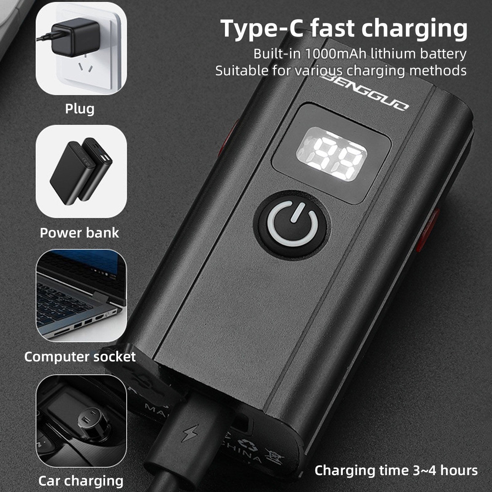 - Convenient charging: The bicycle headlight features a built-in rechargeable 1000mAh lithium battery, requiring only 3-4 hours to fully charge. Use the USB charging option at your convenience.