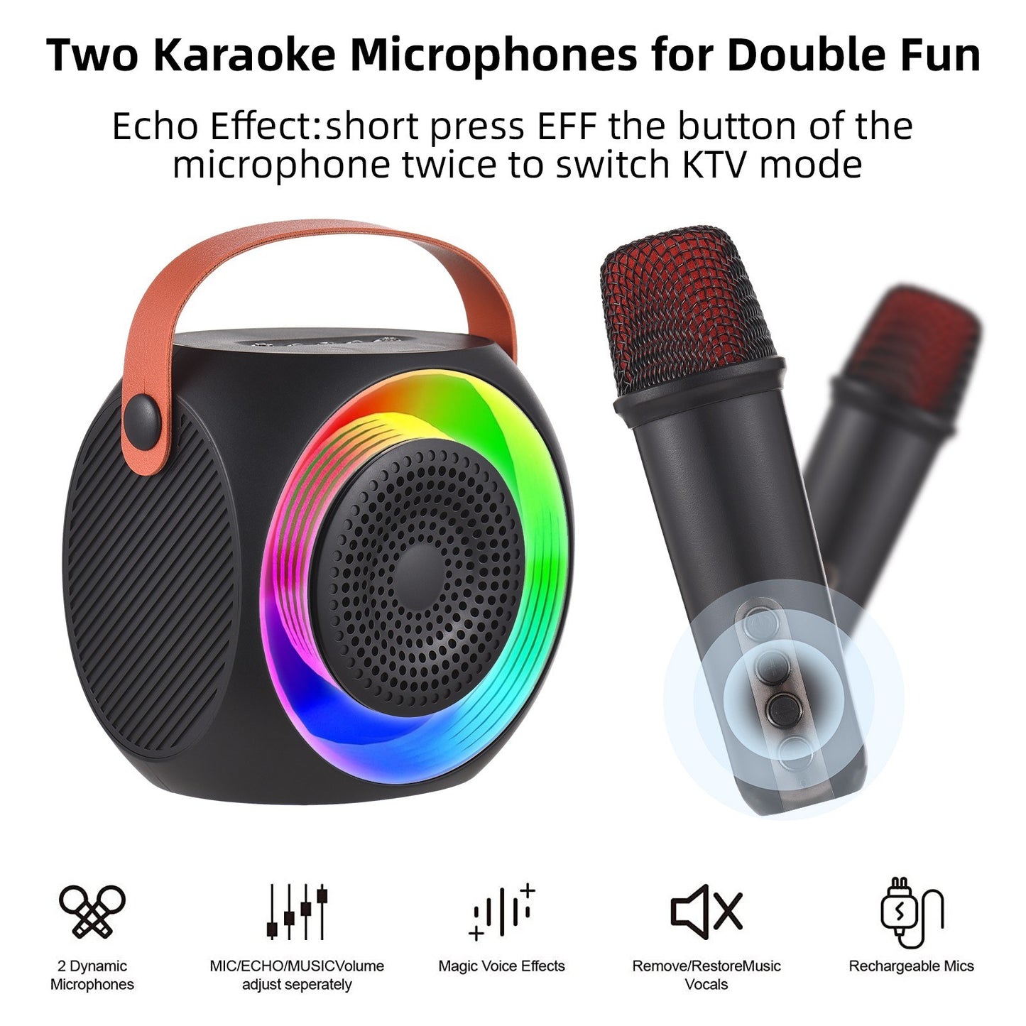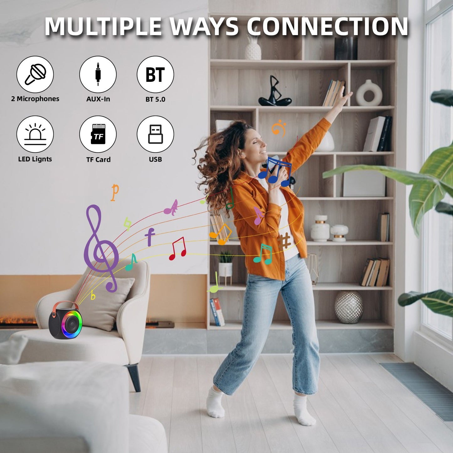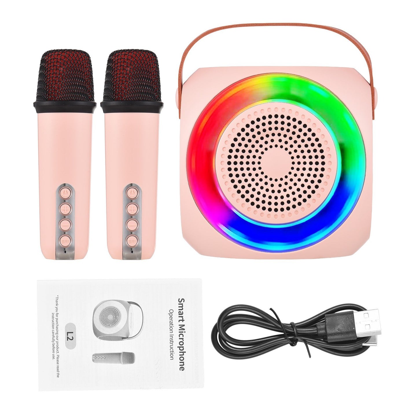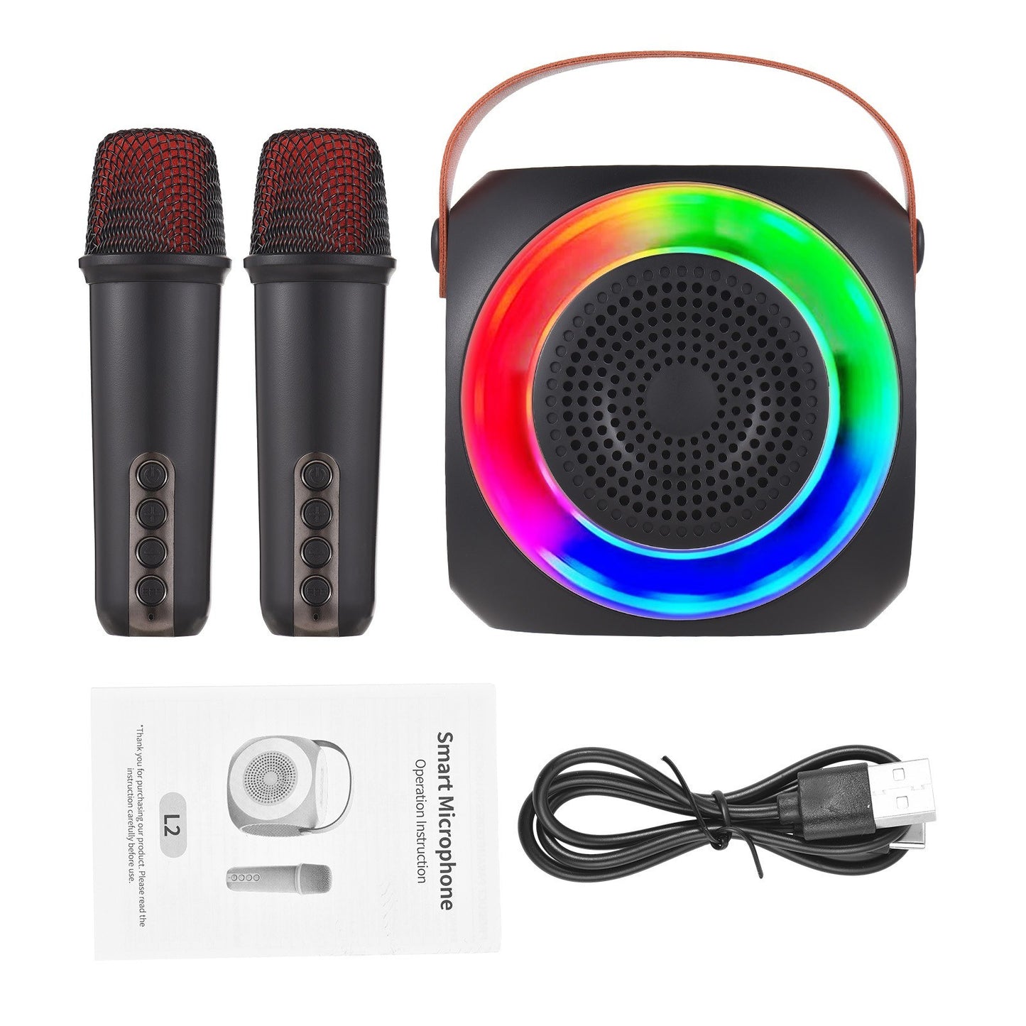 L2 Wireless Mini Karaoke Machine with Dual Microphones & LED Color Lights